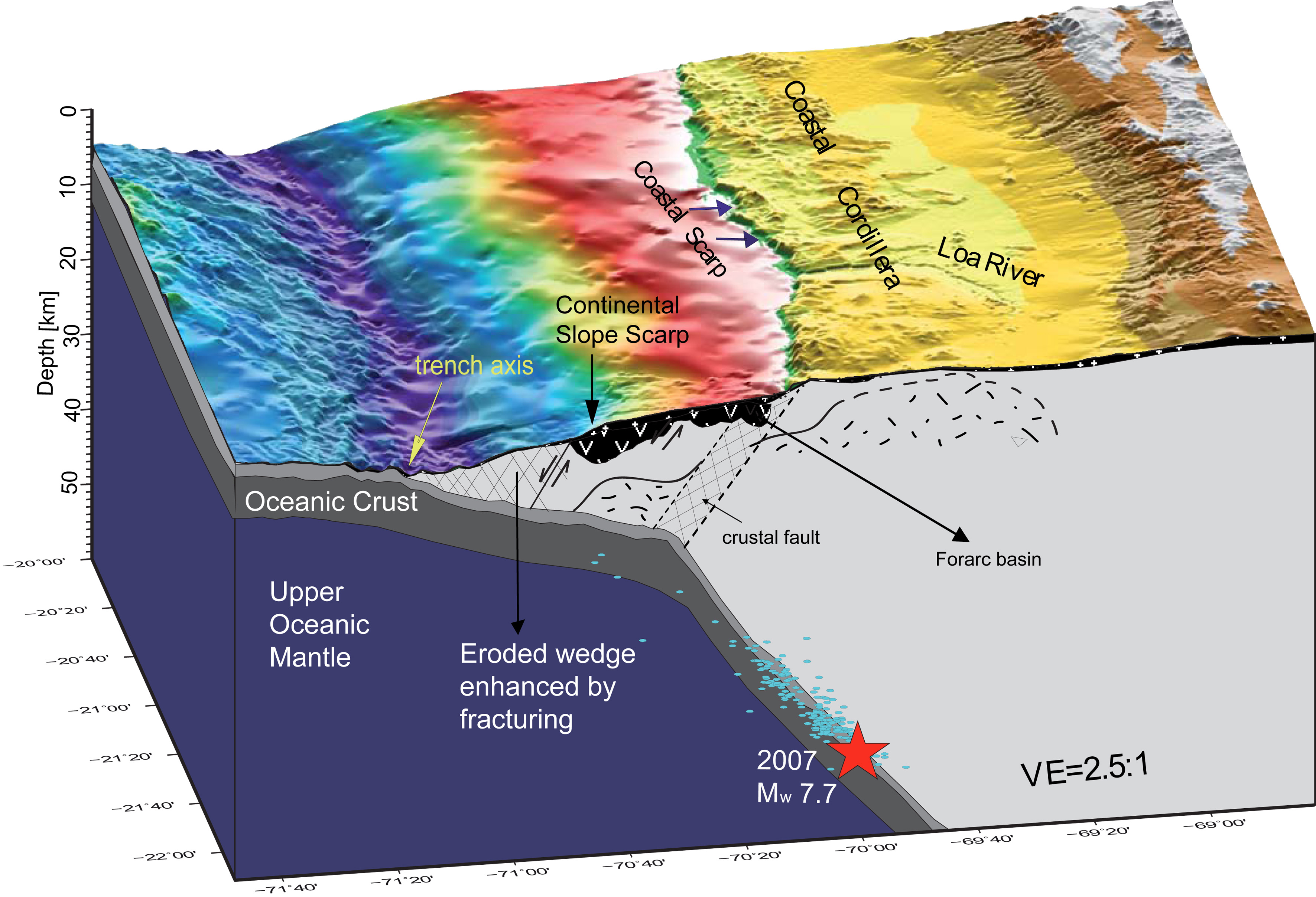 Die Grundvoraussetzungen sind weitgehend bekannt: Von Westen kommend schiebt sich die Nazca-Platt mit einer Geschwindigkeit von etwa einem Zentimeter pro Jahr direkt vor der Küste Chiles unter die kontinentale Südamerikanische Platte. Subduktion nennen Experten diesen tektonischen Vorgang. „Die Details sind jedoch äußerst kompliziert und noch lange nicht verstanden“, sagt Prof. Dr. Ingo Grevemeyer vom GEOMAR, „dabei sind es diese Details, die die Gefahr von Erdbeben und deren Verhalten bestimmen.“