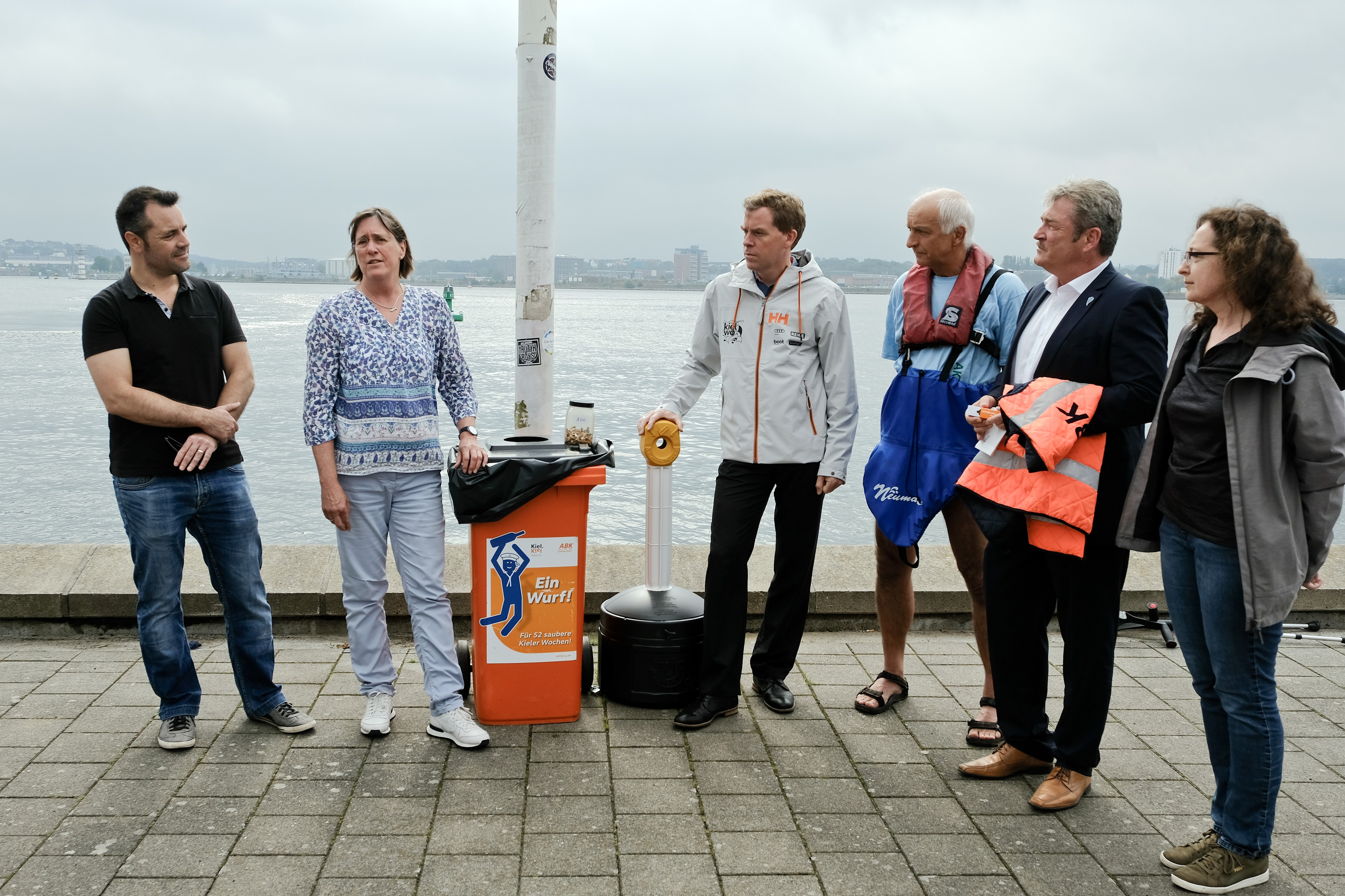 Vor und während der Kieler Woche haben Mitarbeiterinnen und Mitarbeiter des ABK auf dem Arbeitsboot „Schiermoker“ mit engmaschigen Netzen Müll aus der Kieler Förde gefischt, der anschließend von Wissenschaftlerinnen und Wissenschaftler vom GEOMAR analysiert wurde. Tatkräftige Unterstützung gab es von den Kanuten der Kieler Kanu-Klub Vereinigung und des Kieler Kanu Clubs, die während der Kieler Woche auch an schwer zugänglichen Stellen Abfälle zur Analyse aus der Kieler Förde fischten.