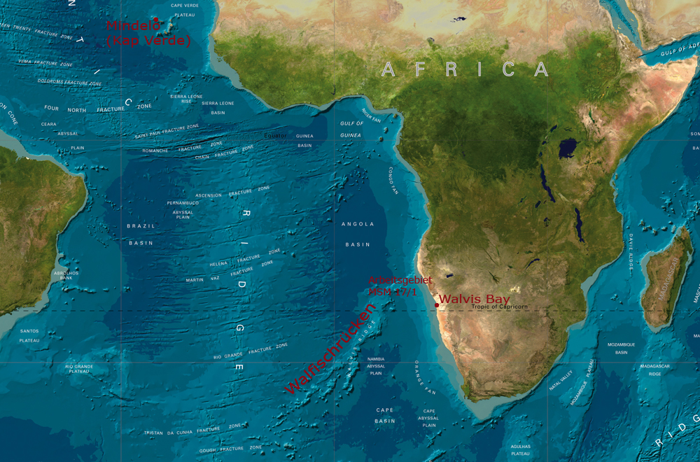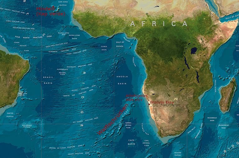 Als Alfred Wegener 1915 sein Buch „Die Entstehung der Kontinente und Ozeane“ veröffentlichte, zog er den Menschen im wahrsten Sinne des Wortes den Boden unter den Füßen weg. Denn er behauptete, dass die Erdoberfläche nicht starr und fest, sondern in Platten unterteilt und beweglich ist. Zunächst glaubte ihm die Fachwelt kein Wort. Erst in den 1960er Jahren setzte sich bei Geologen langsam die Erkenntnis durch, dass die starren Erdplatten tatsächlich auf dem Erdmantel driften. Heute umschreibt man dieses Phänomen mit dem Begriff Plattentektonik. Aber auch wenn sie mittlerweile zur Allgemeinbildung gehört, versteht die Forschung bei weitem nicht alle Prozesse, die ihr zugrunde liegen. Einige Fragen soll eine Expedition Kieler Meeresgeologen mit dem deutschen Forschungsschiff MARIA S. MERIAN beantworten, die am 24. November von den Kapverdischen Inseln Richtung Südost-Atlantik startet. Ziel ist der sogenannte Walfischrücken vor der Küste Namibias. „Wir wissen immer noch zu wenig über das, was sich im Erdmantel abspielt“, sagt der wissenschaftliche Fahrtleiter Professor Jan Behrmann vom Leibniz-Institut für Meereswissenschaften (IFM-GEOMAR), „und wir wollen den Planeten, auf dem wir leben, einfach besser verstehen“.
