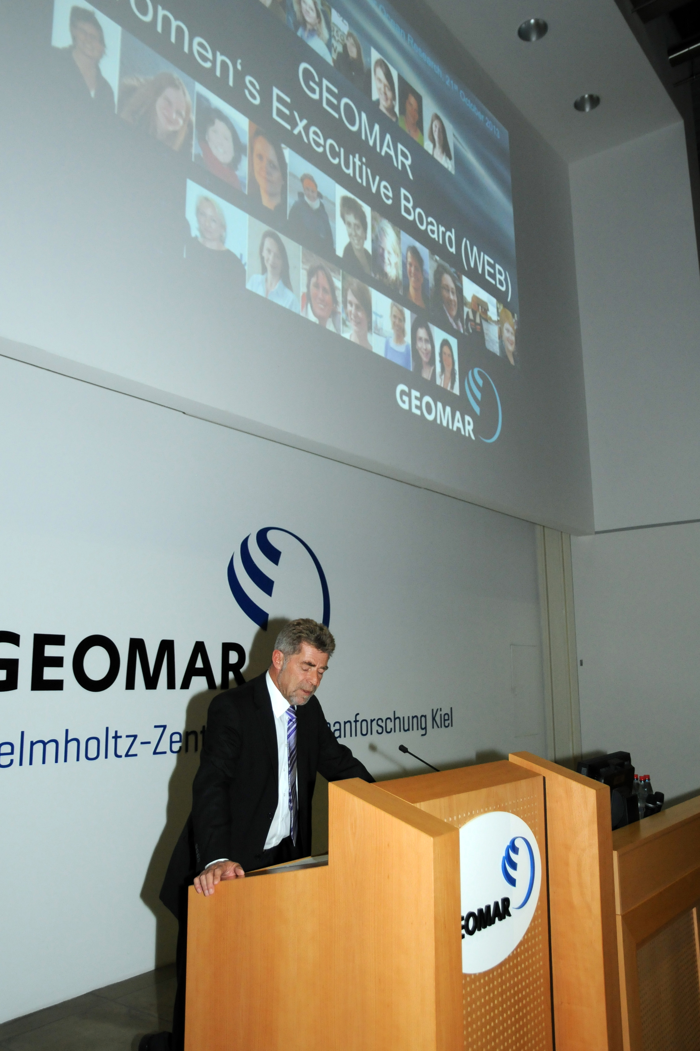 Michael Wagner, Verwaltungsdirektor des GEOMAR, eröffnet die Veranstaltung. Foto: GEOMAR
