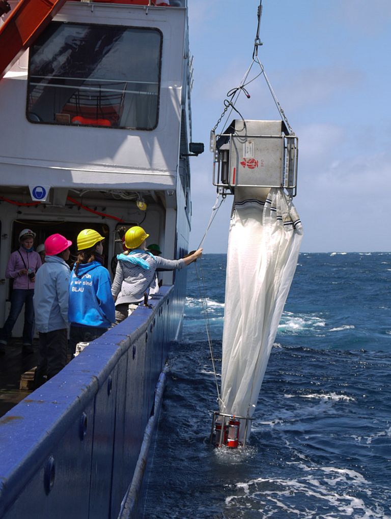 „Das Auftriebsgebiet des Benguelastromsystems vor Namibia ist eines der produktivsten der Welt“, berichtet Privatdozent Dr. Holger Auel von der Universität Bremen. „Wir interessieren uns für das Plankton in diesem Gebiet und insbesondere den Einfluss von sauerstoffarmen Zonen auf dessen vertikale Verteilung.“ Leider haben orkanartige Stürme vor Namibia die Zahl der Messungen während der ersten Arbeitstage deutlich reduziert.
