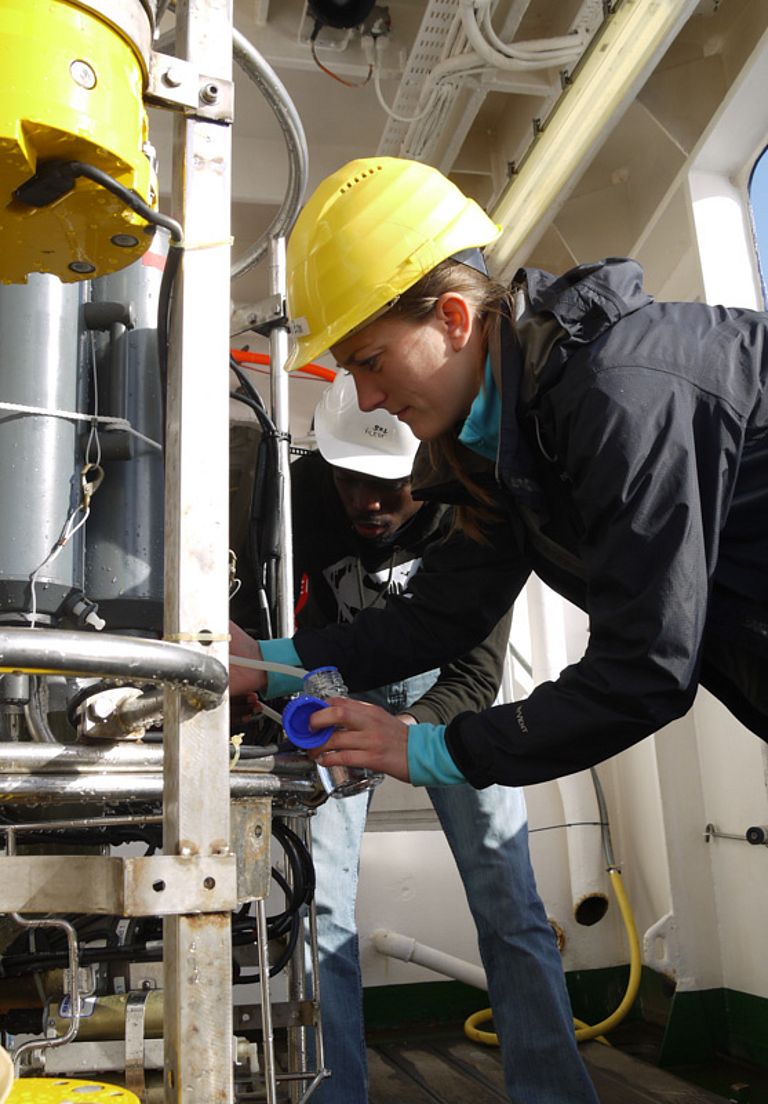 Vermischen sollen sich jedoch nicht nur die Wassermassen der Meere, sondern auch die Ideen und Forschungen der jungen Meereswissenschaftlerinnen und -wissenschaftler aus Deutschland und Afrika an Bord. Die Studierenden helfen aktiv bei den Messungen auf der METEOR mit und müssen in internationalen Teams jeweils ein eigenes kleines Forschungsprojekt konzipieren. Als Grundlage dafür dienen meist die Messungen der METEOR und Modellsimulationen aus Kiel.