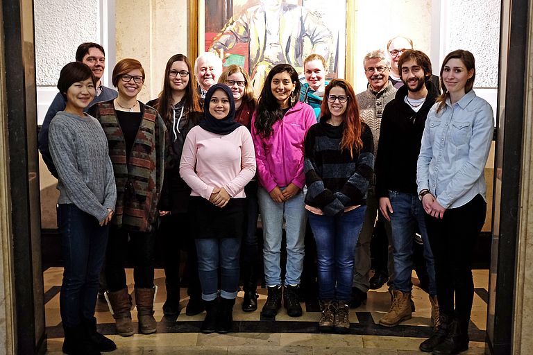 Kiels Stadtpräsident Hans-Werner Tovar (5. v l.) und Stadtrat Sven Seele (3. v. r.) empfingen Studierende und Koordinatoren des GAME-Programms im Kieler Rathaus. Foto: J. Steffen, GEOMAR