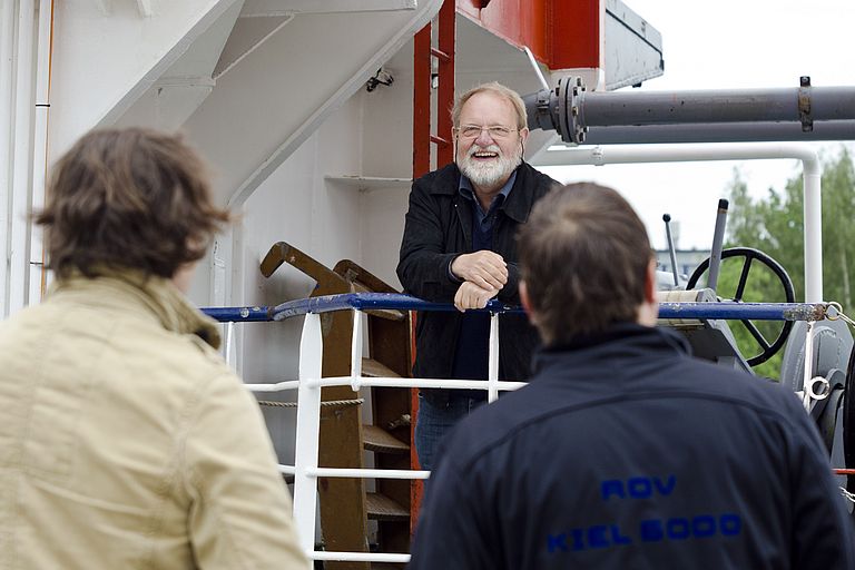Fahrtleiter Dr. Olaf Pfannkuche freut sich über eine gelungen Expedition. Foto: J. Steffen, GEOMAR