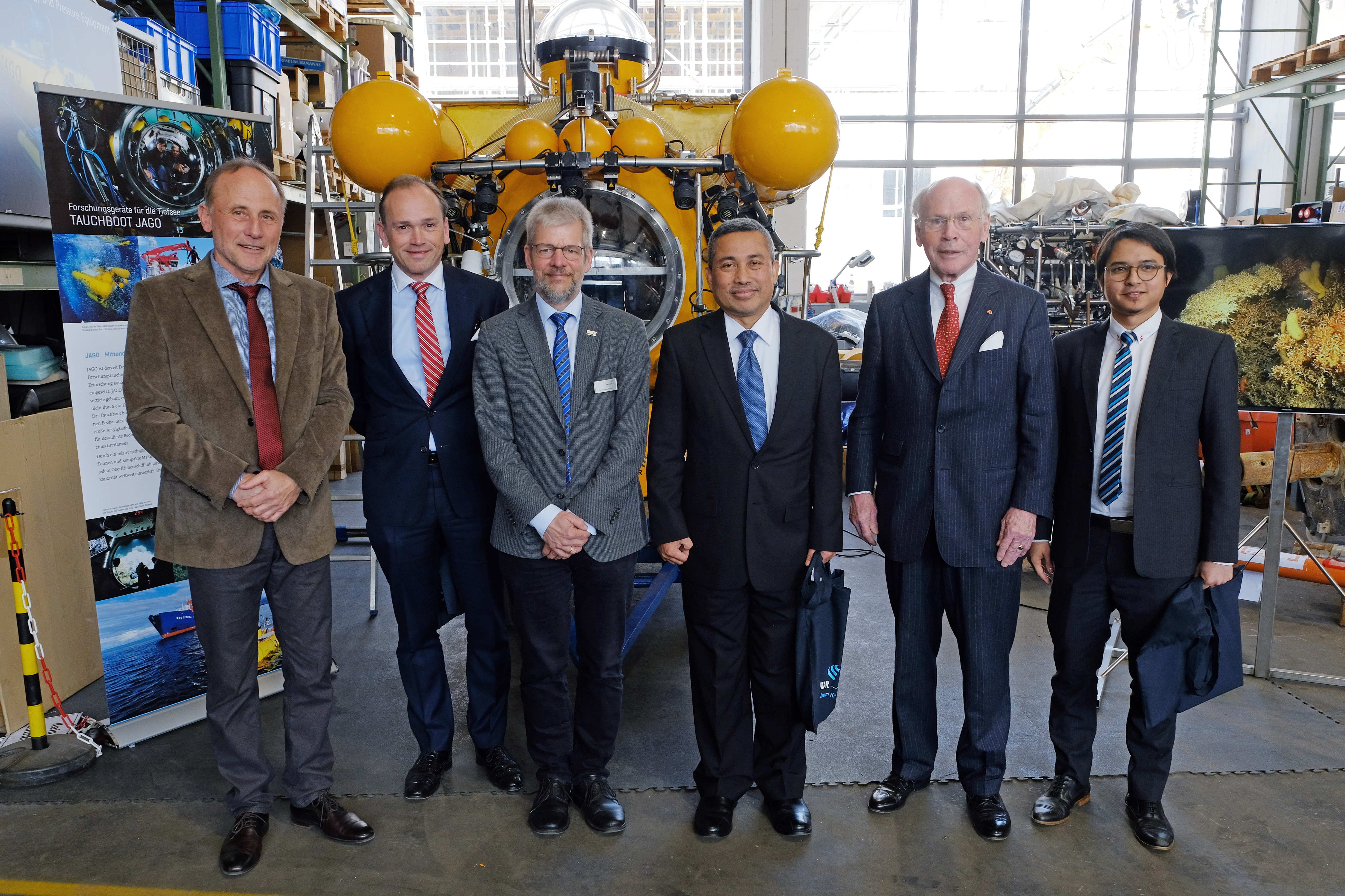 Der indonesische Generalkonsul, Dr. Bambang Susanto, der gemeinsam mit Konsul Dr. Dieter Murmann und seinem Sohn Hendrik Murmann das GEOMAR besuchte, diskutierte mit Vertretern des Forschungszentrums mögliche Intensivierungen der Kooperation mit Indonesien. Bereits seit vielen Jahren existiert auf verschiedenen Forschungsfeldern eine Zusammenarbeit mit indonesischen Einrichtungen.