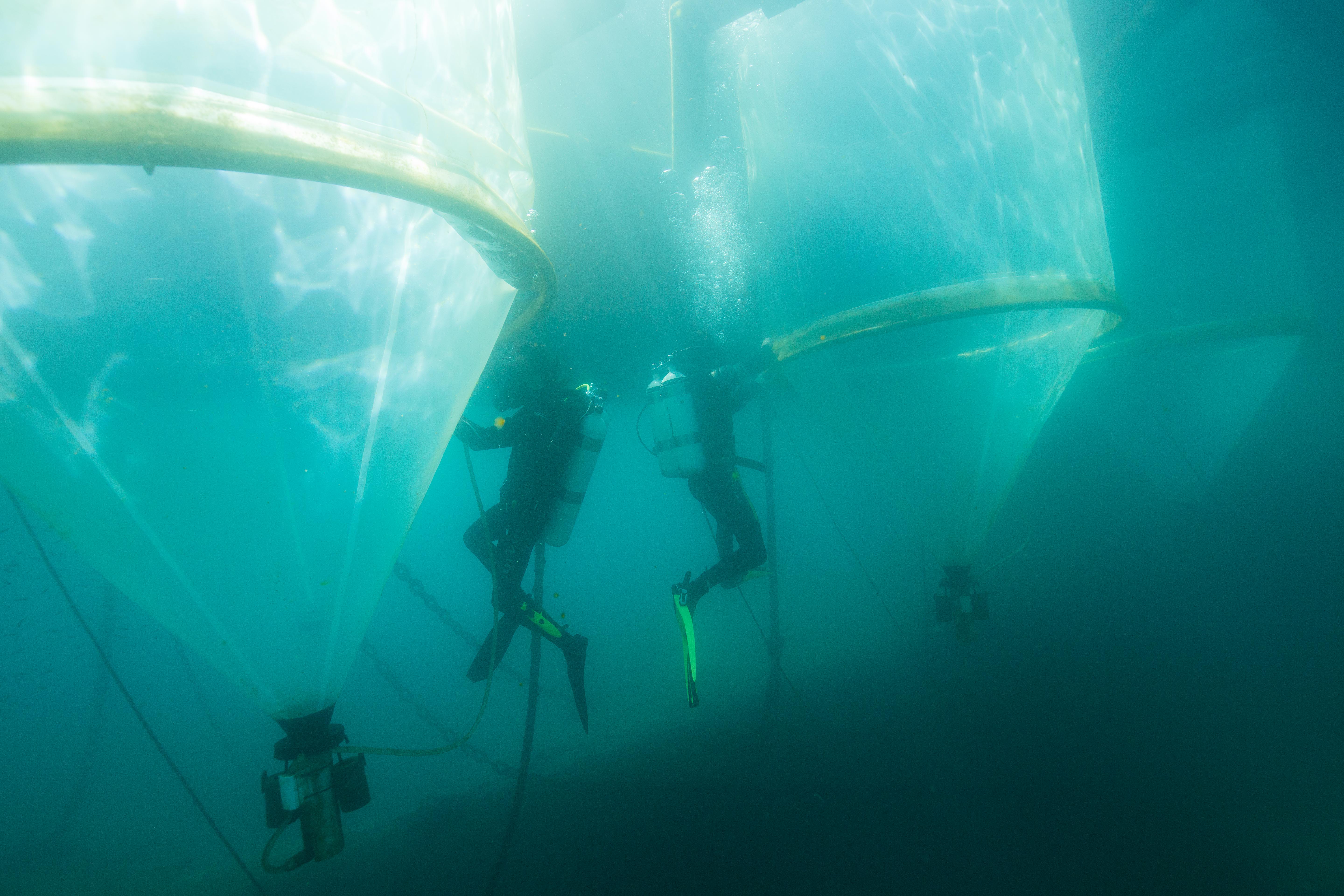 Mesokosmen heißen die abgeschlossenen Meeresbehälter, in denen internationale Forschende jetzt vor Gran Canaria untersuchen, wie sich verschiedene Verfahren der Ozean-Alkalinisierung auf das marine Ökosystem auswirken.