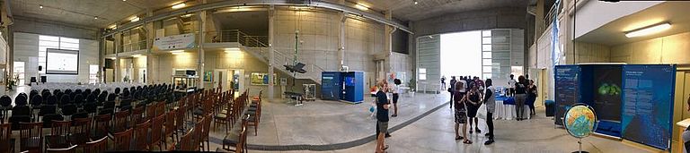 Panoramablick in den Hangar mit Ausstellung "Future Ocean Dialogue". Foto: M. Visbeck, GEOMAR.