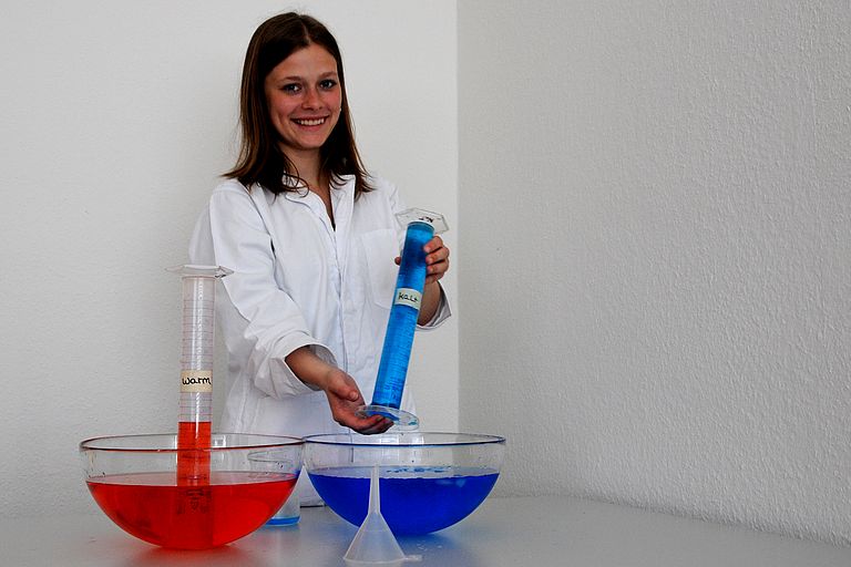 Experiment zur Löslichkeit von Kohlendioxid. Foto: Maike Nicolai, GEOMAR
