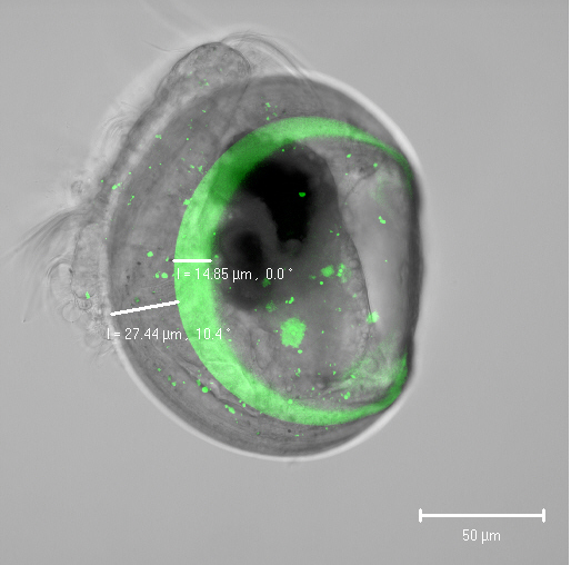 „Für unsere Untersuchungen haben wir erstmalig zwei Methoden benutzt, um die Kalzifizierung von ein bis zwei Tage alten Muschellarven zu verstehen und deren Sensitivität gegenüber dem Klimawandel abzuschätzen“, erläutert Kirti Ramesh, Erstautorin der Studie und Doktorandin in der Arbeitsgruppe Ökophysiologie am GEOMAR und der Integrated School of Ocean Sciences (ISOS) des Exzellenzclusters „Ozean der Zukunft“. „Mit Hilfe von Fluoreszenzfarbstoffen und einer speziellen Mikroskopiermethode konnten wir die Ablagerung von Kalziumkarbonat an lebenden Larven nachvollziehen und zeigen, dass Kalziumkarbonat nicht, wie bisher vermutet, intrazellulär gebildet wird. Wahrscheinlicher ist, dass Kalzium direkt aus dem Meerwasser aufgenommen wird und über spezielle Proteine zur Schale transportiert wird. In direkter Umgebung zur Schale findet dann die Bildung von Karbonat statt“, erläutert die Wissenschaftlerin.