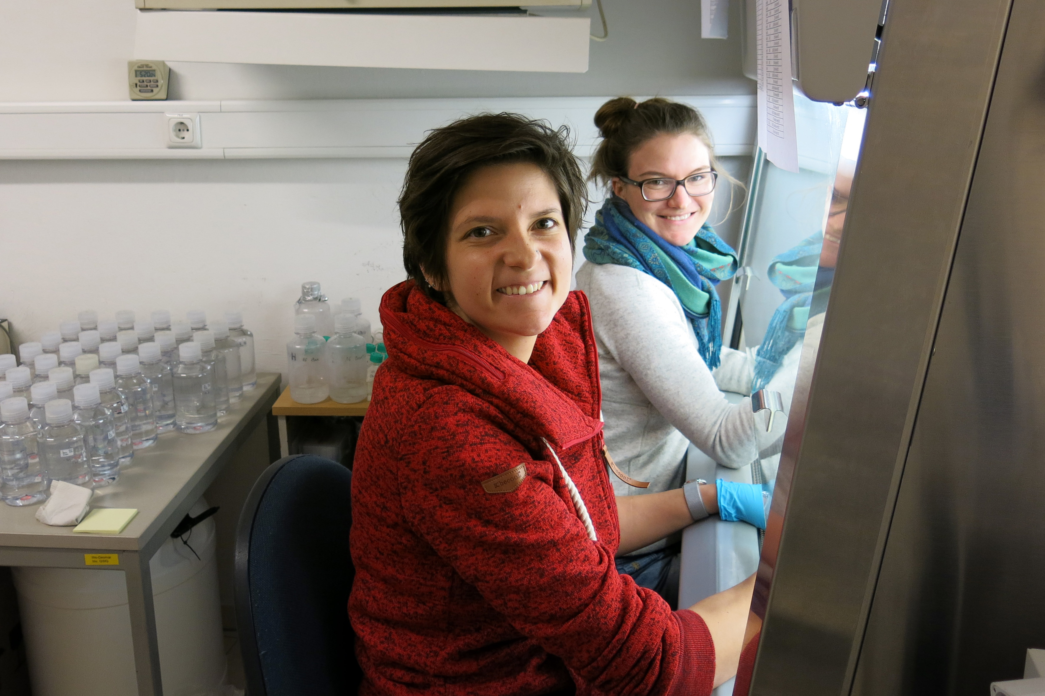 Die beiden Erstautorinnen Luisa Listmann und Giannina Hattich im Labor. Foto: Xupeng Chi, GEOMAR