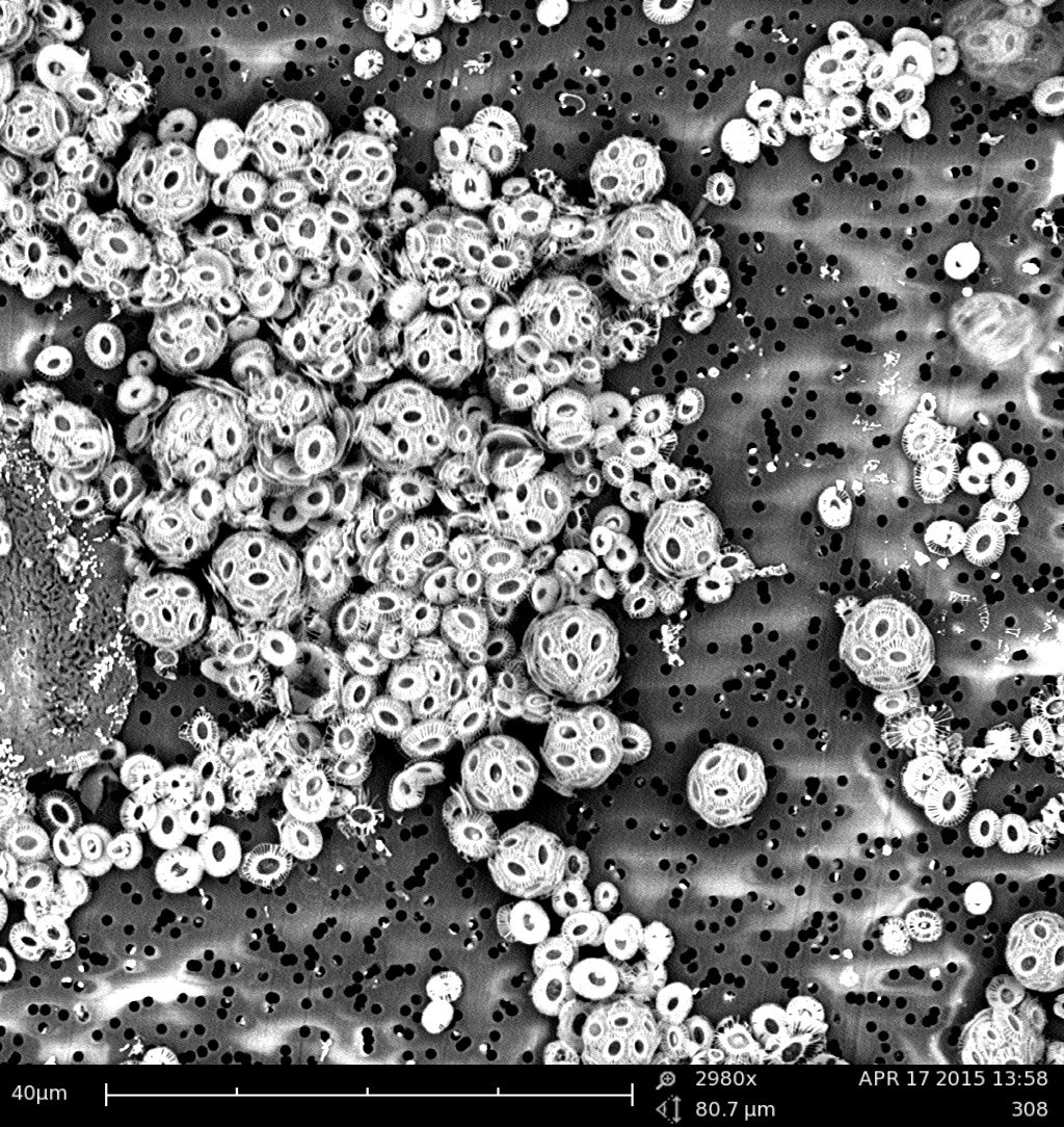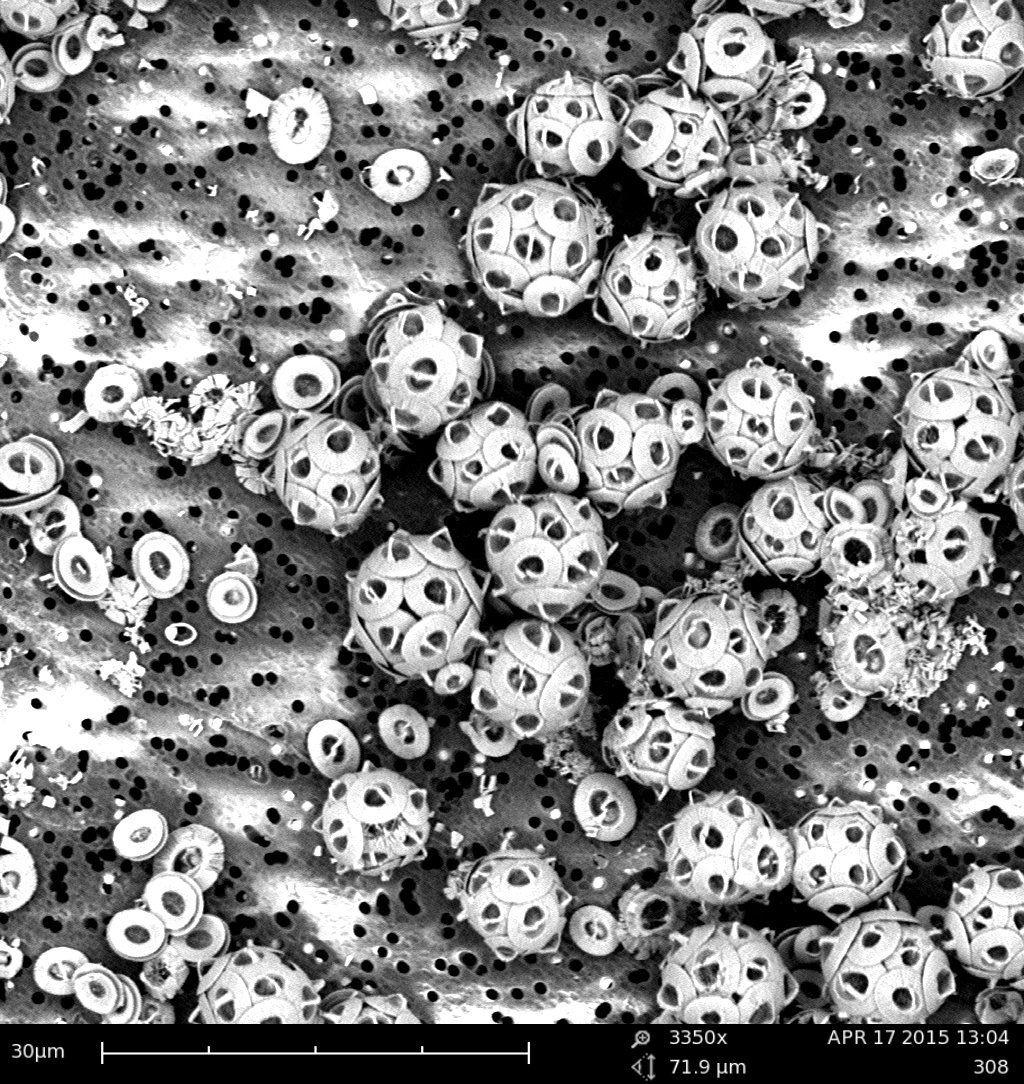 Mikroskopische Aufnahme der Kalkalge Emiliania huxleyi. Foto: Luisa Listmann, GEOMAR