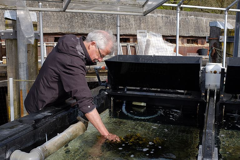 „Wir speisen die Becken direkt mit Wasser aus der Förde. Das heißt, wir bilden alle natürlichen Schwankungen zwischen Tageszeiten, aber auch zwischen Jahreszeiten ab“, erklärt der Arbeitsgruppenleiter Prof. Dr. Martin Wahl vom GEOMAR. Auf die natürlichen Schwankungen kommen dann während der Experimente entsprechende Werte, zum Beispiel bei den Temperaturen, oben drauf.