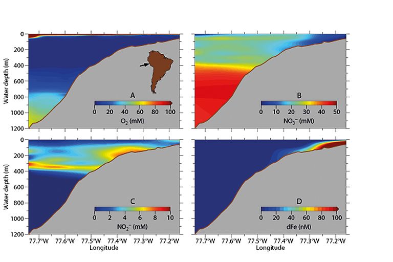 Ein internationales Forscherteam unter Leitung des GEOMAR Helmholtz-Zentrums für Ozeanforschung Kiel hat im Rahmen des Sonderforschungsbereichs 754 „Klima-Biogeochemische Wechselwirkungen im Tropischen Ozean“ jetzt in einer aufwendigen interdisziplinären Studie einen Prozess entdeckt, der den Eisenabbau unter sauerstoffarmen Bedingungen erklärt. „Die Ergebnisse können auch dazu beitragen, so fundamentale Vorgänge wie den Stickstoff- und den Kohlenstoffkreislauf besser zu verstehen“, erklärt Dr. Florian Scholz vom GEOMAR. Er ist Erstautor der Studie, die jetzt in der internationalen Fachzeitschrift Earth and Planetary Science Letters erschienen ist.