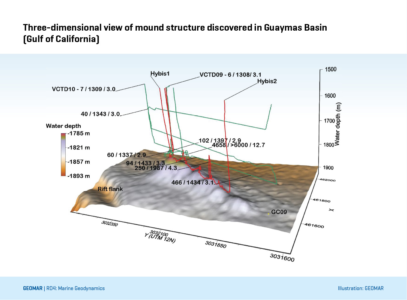 Wie der Atlantik vor 55 Millionen Jahren ist der Golf von Kalifornien heute ein sich öffnendes Ozeanbecken. Vulkanische Aktivität entlang einer Bruchzone am Meeresboden bildet stetig neuen Meeresboden und drückt den alten zur Seite. Dabei gelangt Magma aus den aktiven zentralen Bereichen auch in die schon bestehenden Becken abseits der Bruchzone, wo bereits dicke Sedimentschichten liegen. „Diese Sedimente enthalten viel Kohlenstoff, der von dem eindringenden Magma in Bewegung gesetzt werden kann“, erklärt Professor Berndt.