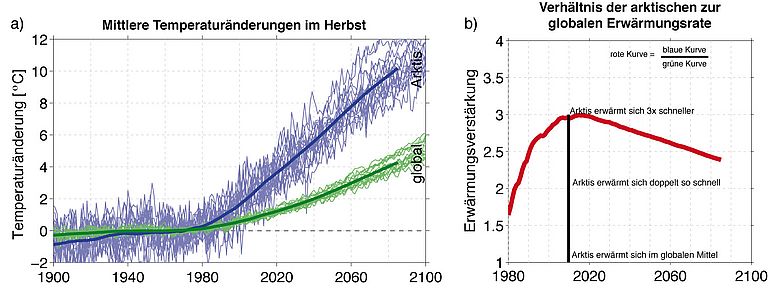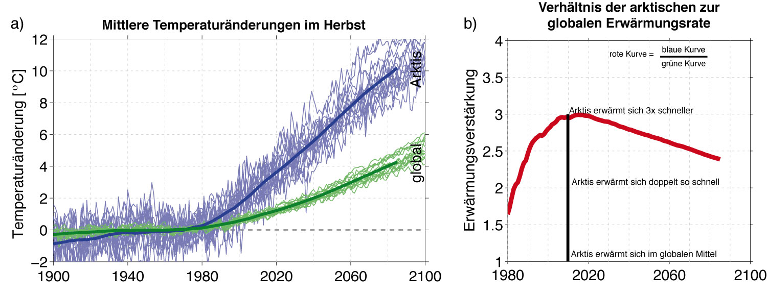 „In unserer Studie zeigen wir, dass die derzeit schnellere Erwärmung der Arktis im Vergleich zum globalen Mittel, auch „Arctic Amplification“ genannt, zeitlich nicht konstant ist und voraussichtlich im nächsten Jahrzehnt langsam wieder abnehmen wird. Der gerade stattfindende Übergang zu einer saisonalen Eisbedeckung ist einer der Gründe oder sogar ursächlich für diesen Spitzenwert der „Arctic Amplification“ verantwortlich. Dass heißt, die Erwärmungsrate – nicht die Erwärmung selbst – wird in Zukunft langsam wieder abnehmen.“, so Dr. Torge Martin, Zweitautor der Studie. „Wir nehmen deshalb an, dass wir derzeit und in den kommenden zehn Jahren den extremsten Teil der Veränderungen insbesondere im maritim geprägten Teil der Arktis unter anthropogenem Klimawandel erleben werden – und nicht erst in der zweiten Hälfte des 21. Jahrhunderts“, so Dr. Martin weiter. Der Wandel zur neuen Arktis vollzieht sich jetzt, so das Résumé der Autoren.