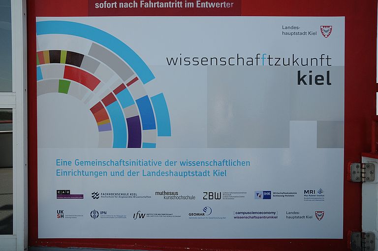 Das Design „wissenschafftzukunft-kiel“ ist das gemeinsame Markenzeichen aller wissenschaftlichen Einrichtungen und der Landeshauptstadt Kiel für gemeinsame Aktionen mit einem einheitlichen Design. Auf einer der Folien, mit denen das Schiff beklebt wurde, sind die Beteiligten genannt: Christian-Albrechts-Universität zu Kiel, Fachhochschule Kiel, Muthesius Kunsthochschule, Institut für Weltwirtschaft, Universitätsklinikum Schleswig-Holstein, GEOMAR Helmholtz-Zentrum für Ozeanforschung Kiel, ZBW Deutsche Zentralbibliothek für Wirtschaftswissenschaften – Leibniz-Informationszentrum Wirtschaft, Max Rubner-Institut, Wirtschaftsakademie Schleswig-Holstein, Leibniz-Institut für die Pädagogik der Naturwissenschaften und Mathematik, Wissenschaftszentrum Kiel und Landeshauptstadt Kiel.
