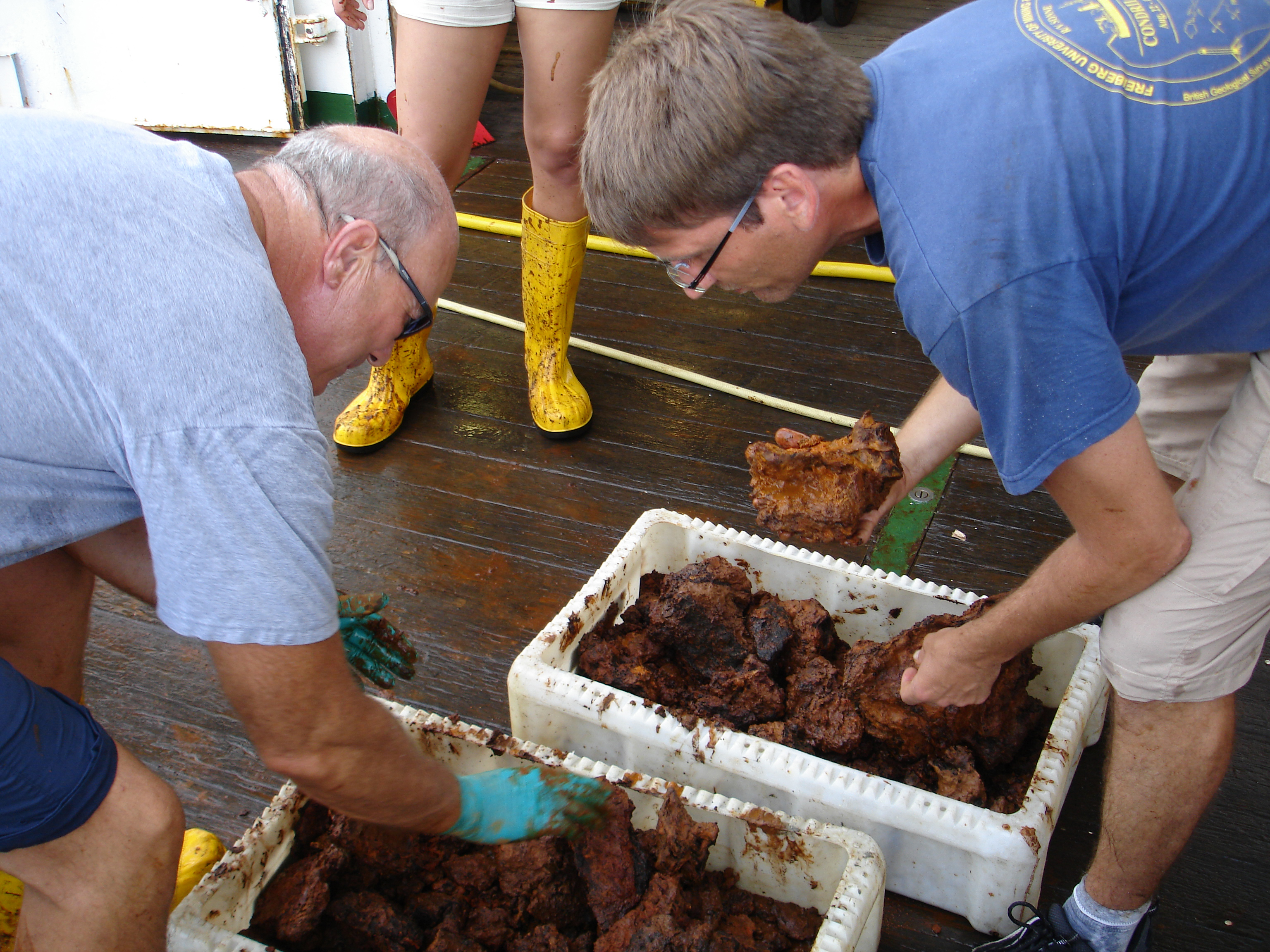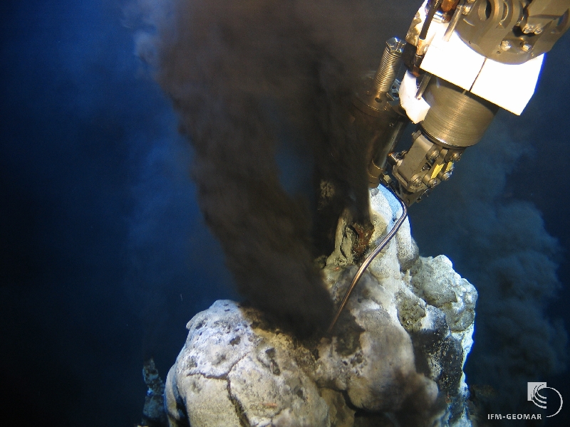 Elektronik, Kommunikationstechnik, Optik und viele andere wachsende Industriezweige lassen die weltweite Nachfrage nach Kupfer und Zink, aber auch nach Silber, Gold und anderen Metallen kontinuierlich ansteigen. Solche Metalle sind auch am Meeresboden in sogenannten Massivsulfiden zu finden. Diese Gesteine entstehen überwiegend entlang der Grenzen tektonischer Platten, den Mittelozeanischen Rücken. Dort dringt Wasser ins Erdinnere ein, wird in der Tiefe aufgeheizt und chemisch verändert und steigt aufgrund der Erwärmung wieder zum Meeresboden auf. Auf dem Weg nach oben reagiert das aggressive und heiße Wasser mit dem umliegenden Gestein und löst die Metalle heraus. Beim Austritt der bis zu 400oC heißen Lösung werden diese als Metall-Schwefel-Verbindungen ausgefällt und entweder am Meeresboden abgelagert oder als feinste Partikel ins Wasser eingetragen. So entstehen „rauchende“ Schlote, die diesen hydrothermalen Quellen den Namen „Schwarze Raucher“ eingebracht haben und mächtige Ablagerungen von Metallerzen bilden können.