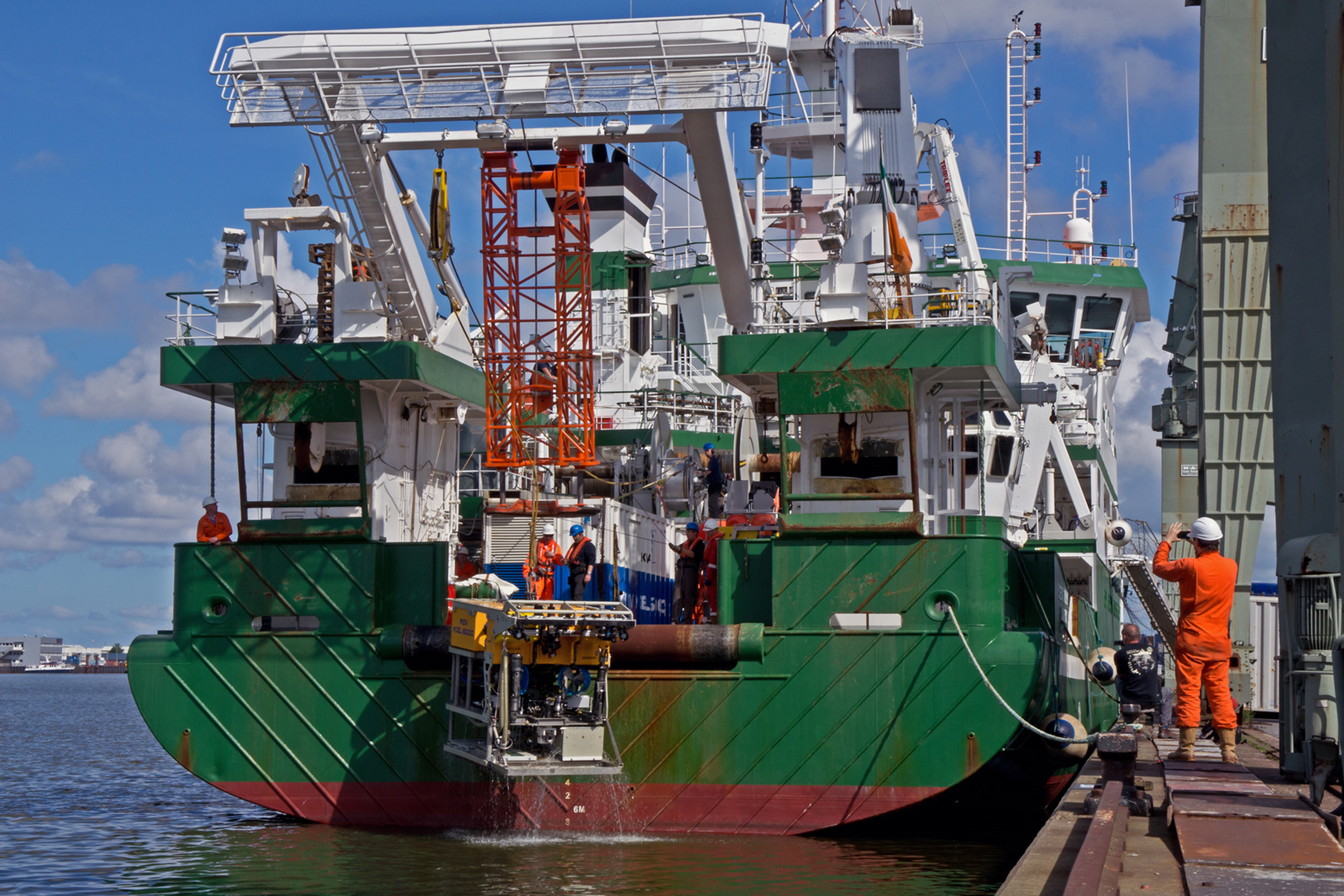 Bei der aktuellen Fahrt mit der CELTIC EXPLORER befinden sich neben dem ROV KIEL 6000 auch zwei autonome Meeresbodenobservatorien (Lander) und weitere Spezialgeräte zur Beprobung des Meerwassers und des Meeresbodens an Bord. „Wir haben sieben Container mit unserer Ausrüstung nach Bremerhaven geschickt, wo das gesamte Instrumentarium an Bord der CELTIC EXPLORER verladen und installiert wird“, berichtet Dr. Linke von den Vorbereitungen für die Fahrt.