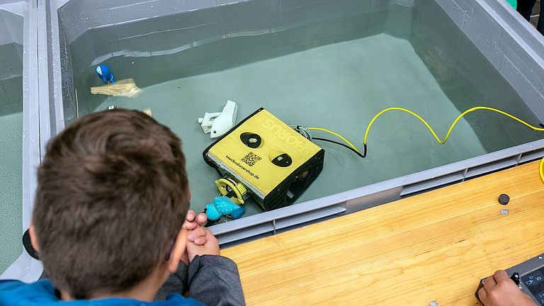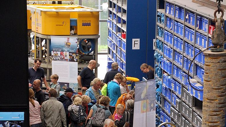Für Groß und Klein gibt es Angebote: Bei Vorträgen im Hörsaal des GEOMAR können Besucher:innen von Forschenden die Bedeutung von Seegras für das Klima lernen, wie schnell der Meeresspiegel jetzt und in Zukunft steigt oder wo man Süßwasser im salzigen Meer findet. An vielen Informationsständen und bei Mitmachaktionen erhalten Interessierte tiefer gehende Einblicke in die aktuellen Themen der Meeresforschung. Wieder mit dabei sind auch Nachwuchsforscher:innen: Jugendliche des „Freitags-Forscher-Clubs“ und anderer Schulprojekte stellen die Ergebnisse ihrer Arbeiten vor. Im Technik- und Logistikzentrum können Besucher:innen aktuelle Meerestechnik kennenlernen, wie zum Beispiel den ferngesteuerten Tiefseeroboter PHOCA, autonome Unterwasserfahrzeuge und innovative Beobachtungssysteme. Hier kann man sogar realistische Modelle von Unterwasserfahrzeugen selbst steuern. Für unsere kleinen Gäste gibt es Kinderbuchlesungen oder die Möglichkeit, aus Meeresmüll Marionetten zu basteln.