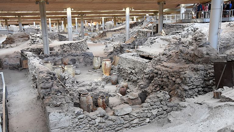 Ausgrabungsstätte der durch die Minoische Eruption verschüttete Stadt Akrotiri auf Santorini. Foto: Jonas Preine