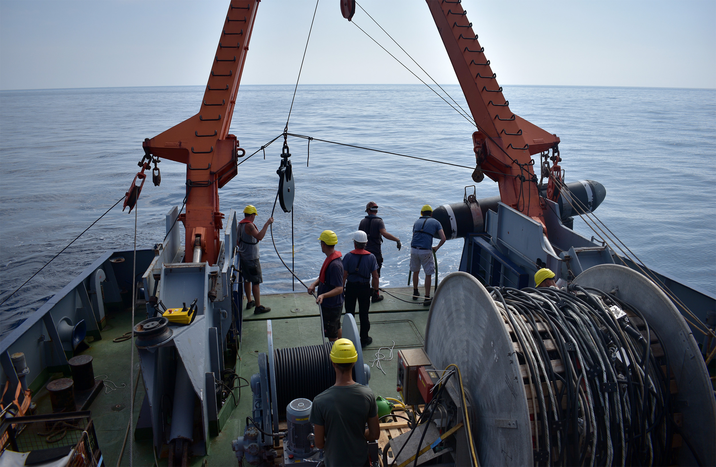 Messungen zur Minoischen Eruption auf dem Forschungsschiff Poseidon. Foto: Jens Karstens
