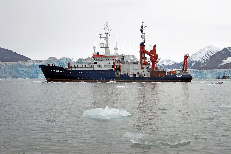 Die POSEIDON vor der Insel Spitzbergen am Rande der Arktis... . Foto: Jens Greinert, GEOMAR