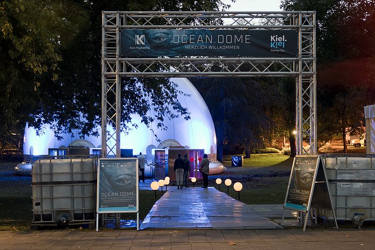 Neben dem Ausstellungszelt wird am Tag der deutschen Einheit eine weitere Attraktion auf der Institutswiese zu besuchen sein: der Ocean.Dome. Gäste können in der aufblasbaren Kuppel 3D-Dokumentationen und Filme wie in einem Planetarium erleben und das Ganze auch noch kostenfrei. Hier werden auch Filme des GEOMAR und des Helmholtz-Zentrums Geesthacht gezeigt. Dabei können Gäste mit zu Kaltwasserkorallenriffen vor Norwegen tauchen oder auf eine virtuelle Wirbeljagd im Meer gehen. Vom 30.9. bis zum 6.10. gibt es die Möglichkeit täglich zwischen 9 und 22 Uhr dieses einzigartige audio-visuelle Erlebnis, organisiert von Kiel Marketing, kennen zu lernen.
