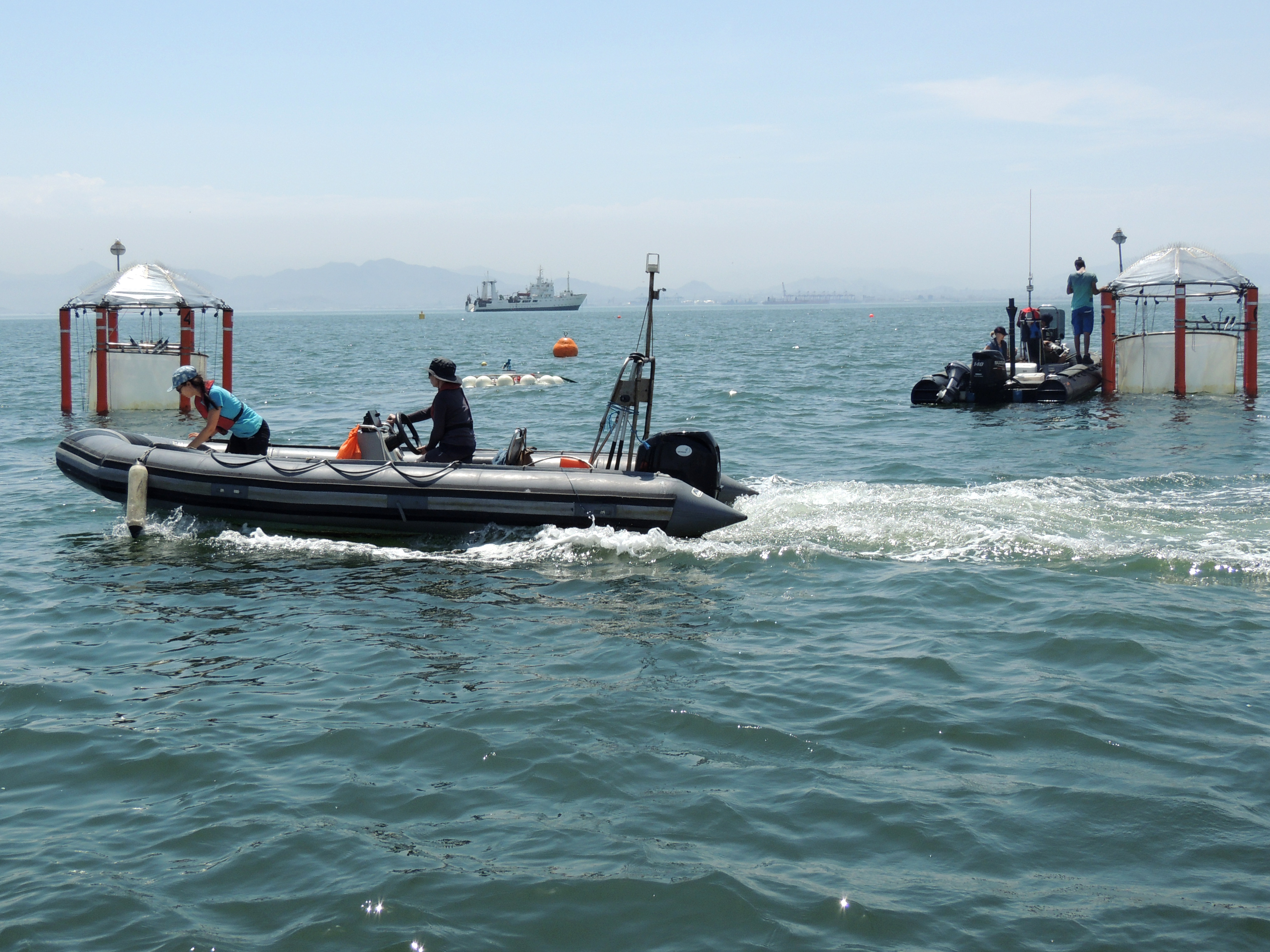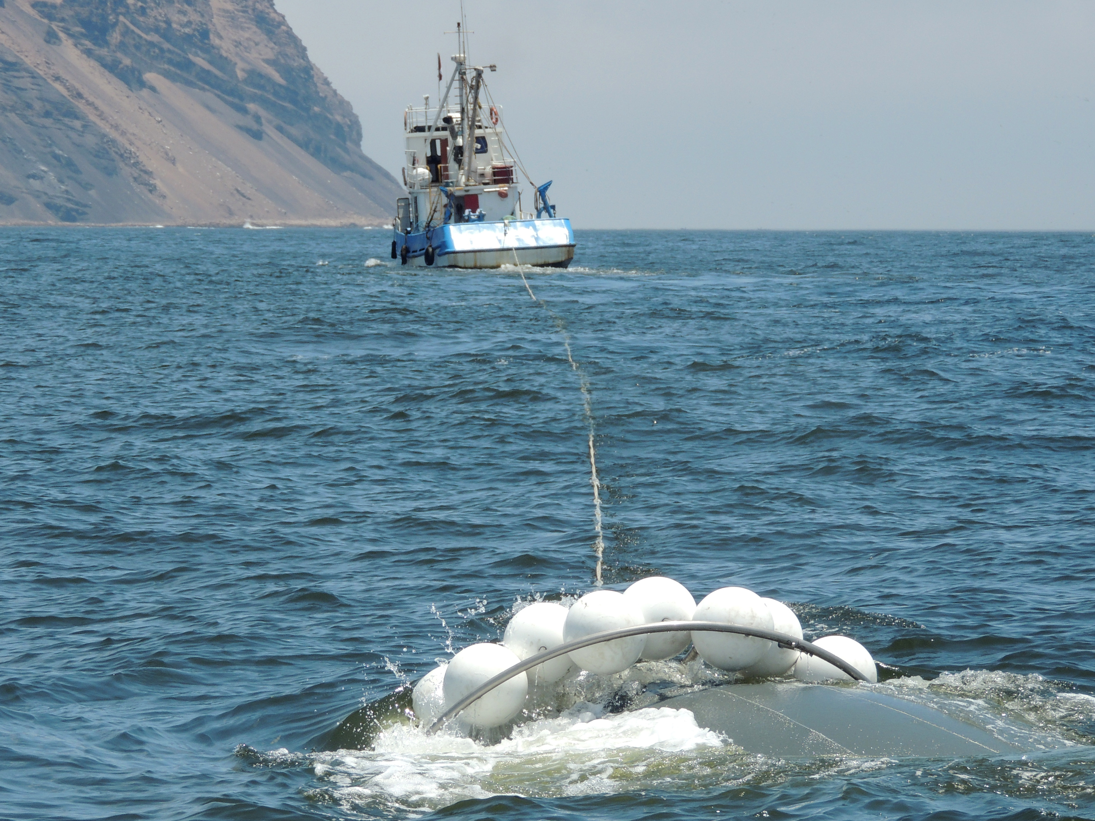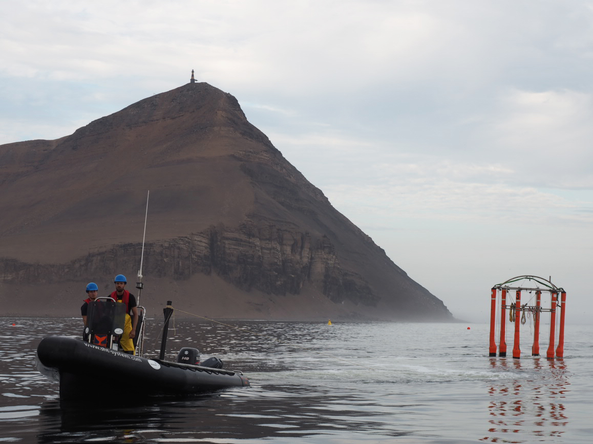 Experiment mit den Kieler KOSMOS-Mesokosmen vor der Küste Perus
