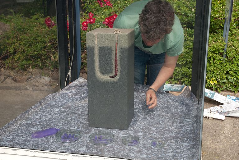 Mögliche Konsequenzen zeigt der Schaukasten am Beispiel des Wattwurms. Pro Tag frisst jedes Exemplar 15 Gramm Sand – inklusive der darin enthaltenen Mikroplastikteilchen. Wattwürmer sind für das Ökosystem Wattenmeer sehr wichtig: Sie graben den Wattboden um und durchlüften ihn dadurch. Gleichzeitig verwerten sie die organische Materie, die das Meer ins Watt bringt, und machen die darin enthaltene Energie für das Ökosystem verfügbar: Wattwürmer sind wiederum Nahrung für viele andere Tiere. „Wenn sich Schadstoffe in Wattwürmern anreichern, ist bald die gesamte Nahrungskette betroffen“, betont der Kieler Meeresbiologe.