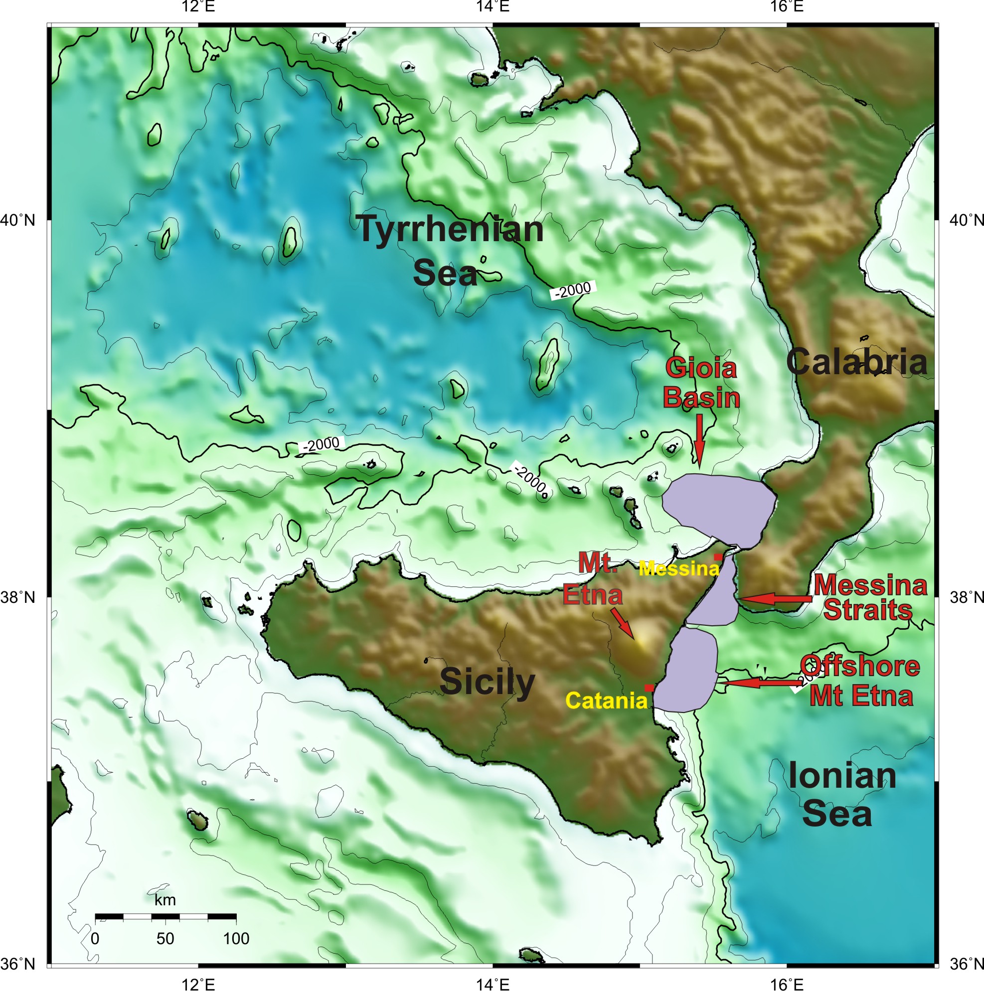 Arbeitsgebiet: Straße von Messina, Küste Siziliens