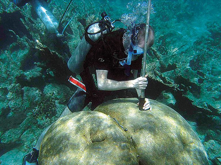 Mittlerweile helfen Korallen, viele Fragen zur Klima- und Umweltgeschichte zu beantworten. Ihr Vorteil: Sie bieten eine sehr feine zeitliche Auflösung, die mit anderen Klimaarchiven, zum Beispiel Sedimentkernen, kaum zu erreichen ist. „Korallen erreichen oft ein Alter von mehreren hundert Jahren. Ihr jährliches Wachstum wird ähnlich wie bei Bäumen in Dichtebändern dokumentiert und ermöglicht so die Untersuchung geochemischer Parameter in jährlicher, teils saisonaler Auflösung, die bis in Zeiten vor der industriellen Entwicklung des 19. Jahrhunderts zurückreichen", erklärt Professor Dullo. Selbst einzelne Naturereignisse wie Hurrikane oder Extremniederschläge lassen sich im Korallenarchiv ablesen. „Wir konnten beispielsweise mit Hilfe von Korallenriffen bei Madagaskar nachweisen, dass der Agulhas-Strom an der Südspitze Afrikas in den vergangenen 300 Jahren nie so warm war wie heute", sagt Dullo.
