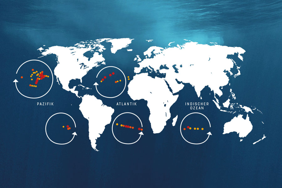 Zusätzliche Untersuchungen im Pazifik finden im Juli und August während einer Expedition des Forschungsschiffs SONNE statt. Die Fahrt unter Leitung von Dr. Dirk Nürnberg aus der Forschungseinheit Paläo-Ozeanographie dient eigentlich dazu, die Klimageschichte des Westpazifiks zu entschlüsseln. Doch auf dem Kurs von Fiji nach Japan werden die Forscherinnen und Forscher an Bord auch nach Mikro- und Makroplastik im größten Ozean der Erde suchen.