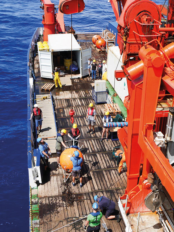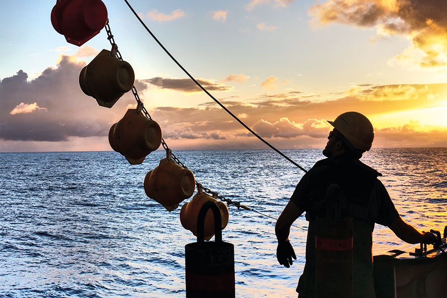 Am 29. Oktober verließ die METEOR Recife wieder. Erstes Arbeitsgebiet der Expediton M159: die brasilianischen Küstengewässer. „Hier geht es uns darum, die Oberflächen- und Tiefenströmungen entlang des Kontinentalhang zu untersuchen, die wichtige Teile der globalen Ozeanzirkulation bilden“, erklärt Martin Visbeck. Das GEOMAR betreibt vor Brasilien seit mehreren Jahren Langzeitverankerungen, um Veränderungen dieses System über möglichst lange Zeiträume zu beobachten. Die Verankerungen wurden geborgen, gewartet und neu ausgelegt. Außerdem absolvierte das Team ein umfangreiches Messprogramm vom Schiff aus
