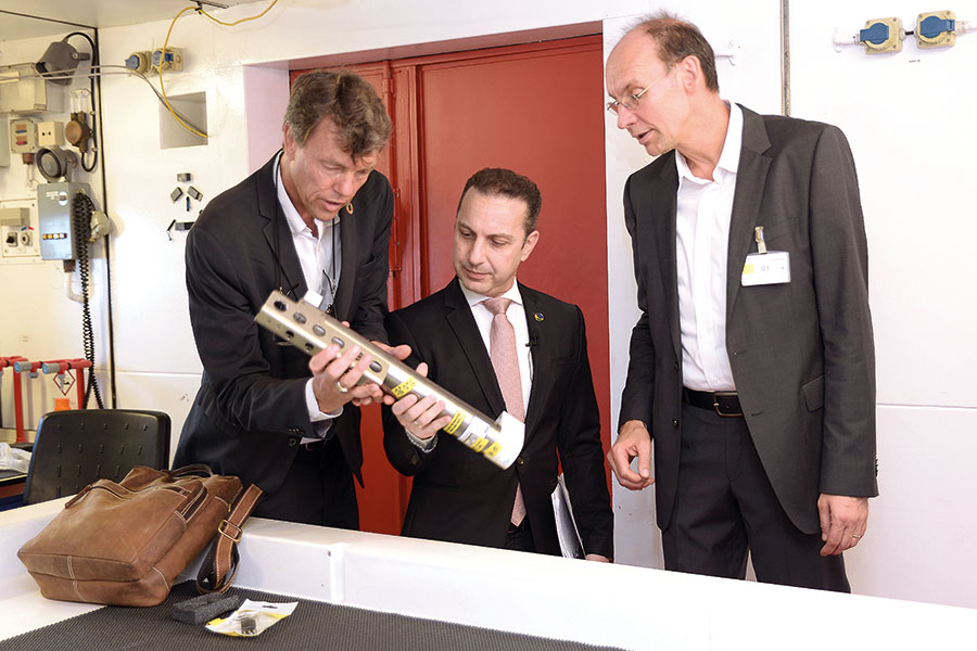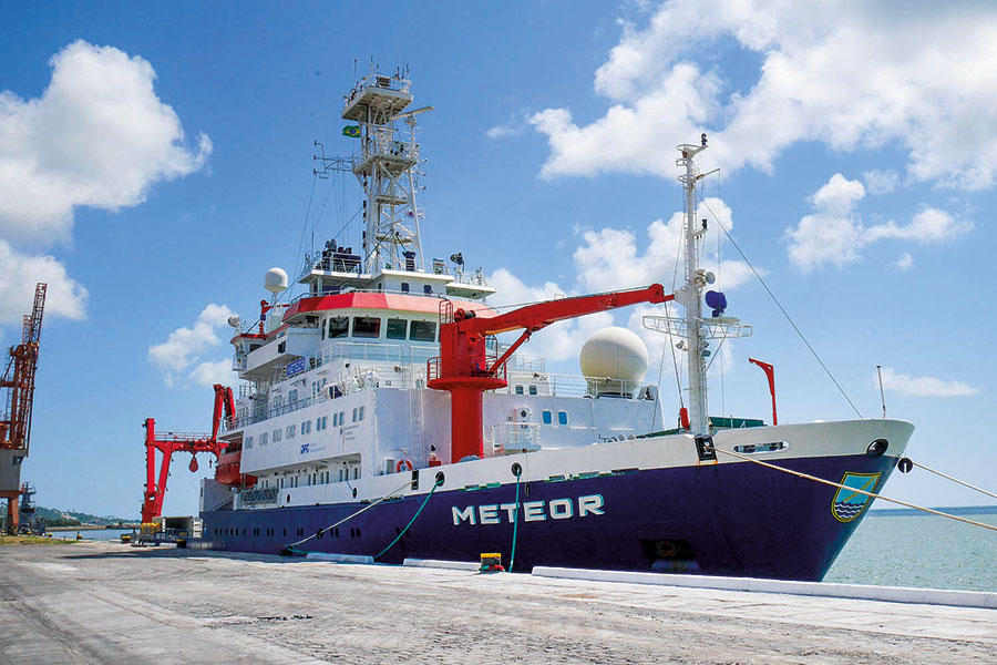 Nach fünfeinhalb Wochen auf See erreichte die METEOR den Hafen von Recife in Brasilien. Dort wartete nicht nur das nächste Expeditionsteam unter der Leitung von Prof. Dr. Martin Visbeck, sondern auch ein intensives Programm auf die Ankommenden. Gleich am Tag der Ankunft veranstalteten die deutsche Botschaft und das Bundesforschungsministerium an Bord einen Empfang anlässlich des 50-jährigen Bestehens der bilateralen Zusammenarbeit von Brasilien und Deutschland in den Bereichen Wissenschaft, Technologie und Innovation. Gruppen brasilianischer Schüler und Studenten besuchten das deutsche Forschungsschiff. „Ein gemeinsames Seminar mit der Ozeanografischen Abteilung der Universität Pernambuco rundete den Besuch ab. Es ist bereits die siebte derartige Veranstaltung, was die langfristige hervorragende Zusammenarbeit zwischen Brasilien und Deutschland in der Meeresforschung hervorhebt“, betont Martin Visbeck.