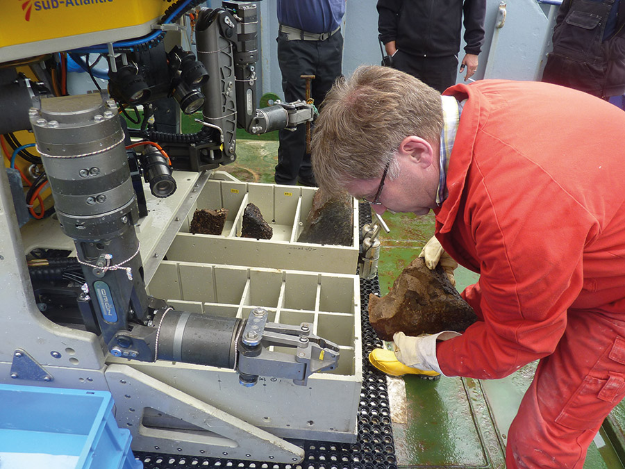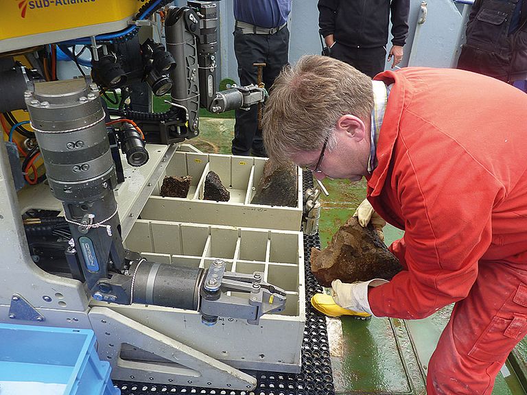 Das zweite Expeditionsteam unter Leitung von Dr. Jörg Geldmacher vom GEOMAR nutzte in den folgenden drei Wochen unter anderem den ferngesteuerten Tauchroboter ROV PHOCA, um Gesteinsproben aus den steilen Unterwasser-Klippen Santorins zu sammeln. „Die Proben aus den tieferen Schichten erlauben uns die frühe Geschichte der Vulkane und die Entwicklung der Magmen zu verstehen“, erklärt der Fahrtleiter. Erste Indizien deuten darauf hin, dass der breite Sockel, auf dem die heutigen Inseln aufsitzen, anders zusammengesetzt ist, als bisher vermutet wurde. Das könnte auch Abschätzungen über die Größe vergangener Eruptionen noch einmal deutlich verändern. „Mit dem ROV PHOCA konnten wir außerdem hochauflösende Foto-Mosaike der unterseeischen Steilhänge produzieren, aus denen wir jetzt präzise 3D-Modelle berechnen können“, ergänzt Fahrtteilnehmer Dr. Tom Kwasnitschka.
