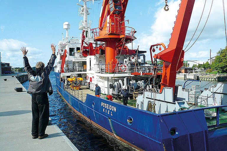 Über die Jahre wurde die Ausrüstung immer wieder modernisiert und an die neuesten technischen Entwicklungen angepasst. Allerdings gingen die Jahre auch an der POSEIDON nicht spurlos vorbei. Um zu gewährleisten, dass modernste Techniken und Geräte auf der POSEIDON eingesetzt werden konnten, waren immer höhere Investitionen notwendig. Wenn die POSEIDON nun nach 43 Jahren und 539 Expeditionen aus der Fahrt geht, blicken viele Wissenschaftlerinnen und Wissenschaftler sowie Crewmitglieder mit etwas Wehmut zurück. Und auch mit gemischten Gefühlen in die Zukunft. Zwar hatte die Bundeskanzlerin bei ihrem Besuch am GEOMAR im Jahr 2012 den Kieler Meeresforschern ein neues Schiff versprochen, die Realisierung verzögert sich aber weiterhin. So wurde nach einer Bedarfsanalyse vor einigen Jahren festgestellt, dass ein Ersatz der Schiffe METEOR und POSEIDON durch ein neues, global operierendes Schiff ausreichend sei. Trotzdem relativ rasch Konsens darüber erzielt werden konnte, dass dieses Schiff ein leicht modifiziertes Schwesterschiff der SONNE sein soll, konnte aus Kapazitätsgründen bei den Planungsbehörden bisher nicht mit der Umsetzung begonnen werden. Dadurch verzögert sich der Neubau weiter und wird derzeit nicht vor 2024 erwartet.