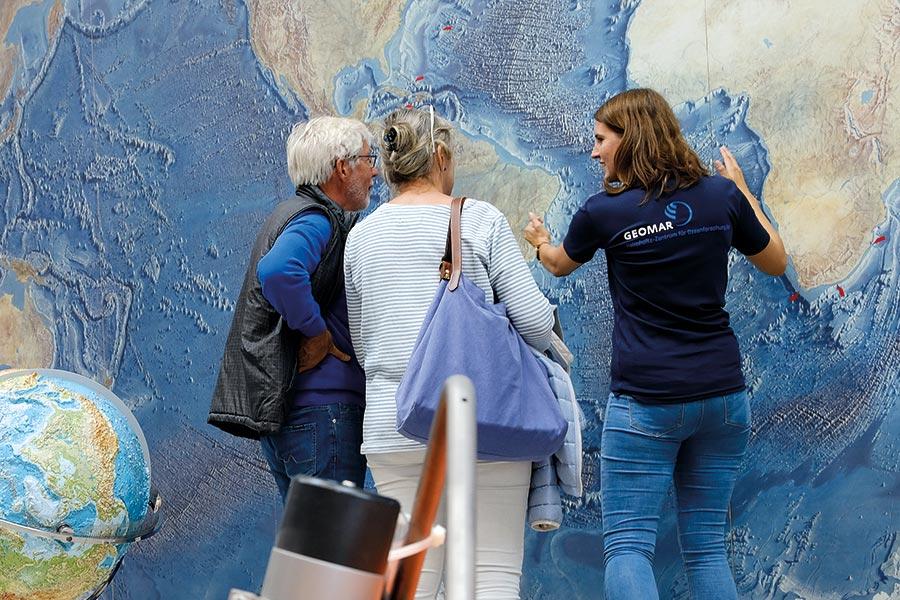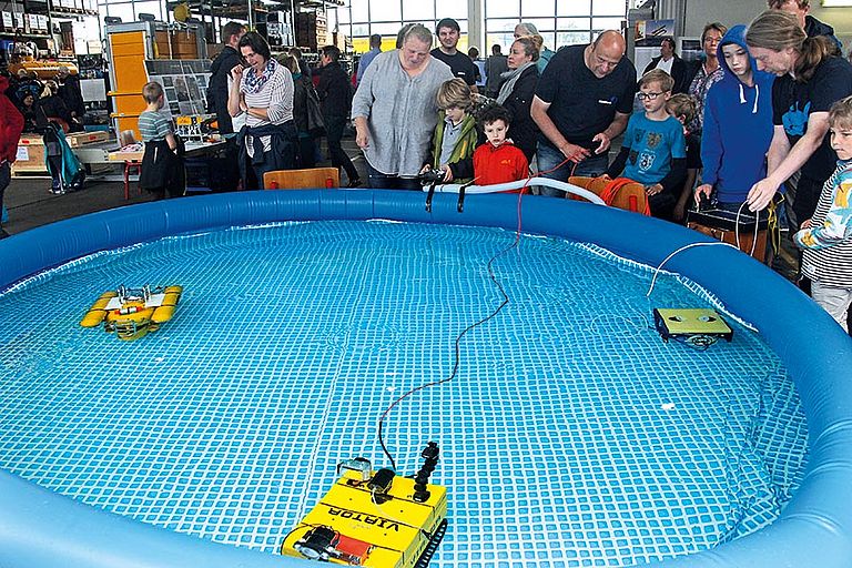 Am 16. Juli öffnete das GEOMAR wieder seine Pforten. Einen besonderen Schwerpunkt bildete in diesem Jahr die Meerestechnik, denn erstmals konnte auch das Technik- und Logistikzentrum besichtigt werden. Dort waren neben den Werkstattbereichen Großgeräte wie der ferngesteuerte Tiefseeroboter PHOCA und das Forschungstauchboot JAGO zu sehen. Beim „Open Ship“ auf dem Forschungsschiff LITTORINA gab es viel zu entdecken. Ergänzt wurde das Programm durch Präsentationen der Forschungsbereiche, von Forschungsprojekten mit Schülern sowie einer Serie von öffentlichen Vorträgen.