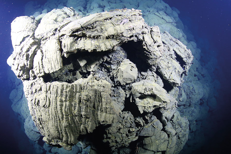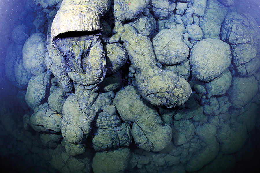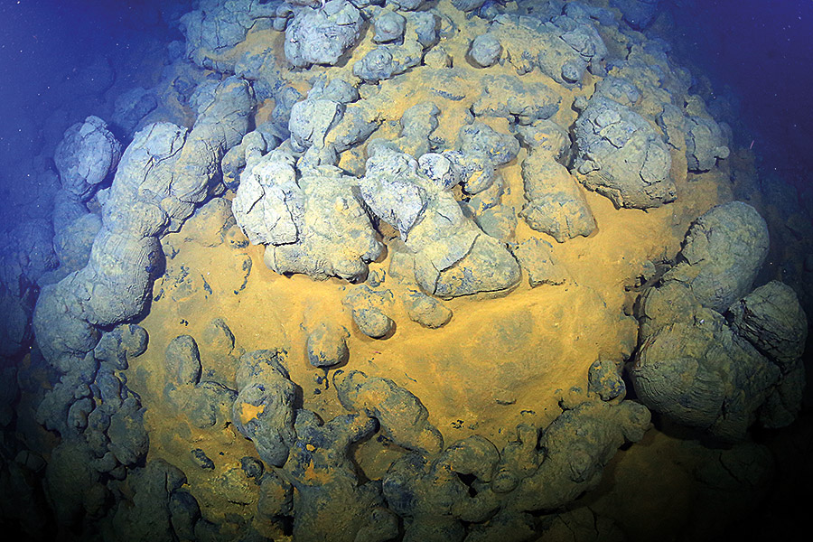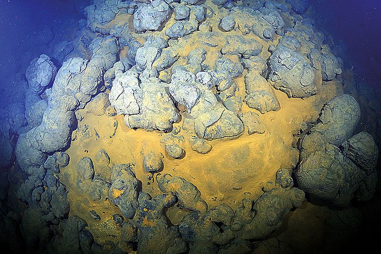 Im Juli dieses Jahres besuchte die Arbeitsgruppe mit dem Forschungsschiff POSEIDON einen Abschnitt des mittelatlantischen Rückens nördlich von Island, densogenannten Nord-Kolbeinsey-Rücken. Schon 2012 hatte das Team dort Lavaströme am Meeresboden mit dem Autonomen Unterwasserfahrzeug AUV ABYSS kartiert. „Wir konnten die Eruptions-Spuren damals mit einer neuen, am GEOMAR entwickelten Methode sogar datieren. Bilder hatten wir aber noch nicht“, erklärt Dr. Yeo. Während der diesjährigen Expedition untersuchte das Team einen Unterwasserberg, der unter dem Namen Eggvin-Bank bekannt ist. Sein Gipfel erhebt sich bis 20 Meter unter die Wasseroberfläche.