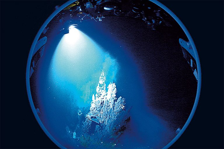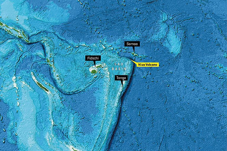 Es ist noch keine vierzig Jahre her, dass Menschen erstmals derartige „Schwarze Raucher“ in der Tiefsee zu Gesicht bekamen. Damals arbeiteten Wissenschaftler mit dem US-amerikanischen Tauchboot Alvin am Grund des Ostpazifiks und bestaunten ihre Entdeckung durch die winzigen Bullaugen der druckfesten Hülle. Heute haben vor allem autonome Tiefsee-Drohnen und kabelgesteuerte Roboter die Aufgabe übernommen, heiße Quellen in den Tiefen der Ozeane zu untersuchen. So wie das kanadische ROV ROPOS, das während der „Virtual Vents“-Expedition im Frühjahr 2016 von der FALKOR des US-amerikanischen Schmidt Ocean Institute aus zum Krater des Niua-Unterwasservulkans etwa 190 Kilometer südwestlich von Samoa abtauchte. „Das Hydrothermalfeld in dem Vulkankrater ist etwa 40.000 Quadratmeter groß. Ziel unserer Ausfahrt war es, das Feld mit neuesten Methoden präzise zu vermessen, um daraus ein 3-D-Computermodell der Formationen in bisher unbekannter Präzision zu erstellen“, erklärt Dr. Tom Kwasnitschka vom GEOMAR, wissenschaftlicher Fahrtleiter der „Virtual Vents“-Expedition.