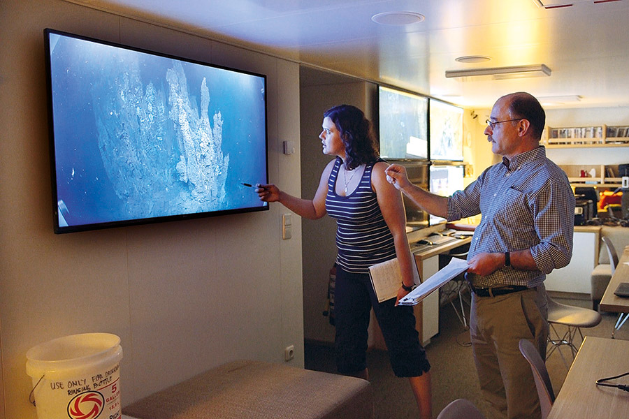 Das Besondere an dieser Expedition: Nicht nur das neunköpfige Forscherteam an Bord konnte auf den Bildschirmen der Schiffs-Datenzentrale die Bilder verfolgen, die ROPOS aus der Tiefe lieferte. Dank modernster Satellitentechnik konnte jeder Interessierte die eingangs beschriebenen Szenen und Bilder aus der Tiefsee weltweit live im Internet verfolgen. „Das ist eine ganz andere Dimension als früher. In den Anfängen der Tiefseeforschung sahen vielleicht nur zwei Wissenschaftler in einem Tauchboot diese faszinierende Welt. Später konnte immerhin das gesamte Team die Bilder der Roboter-Kameras auf Bildschirmen an Bord verfolgen. Jetzt hat theoretisch jeder Mensch die Chance, mit uns virtuell über den Boden der Tiefsee zu schweben“, sagt Dr. Kwasnitschka.