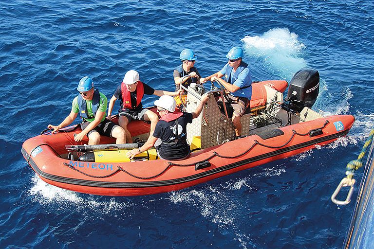 „Ich glaube, ich habe noch nie eine so intensive Messkampagne erlebt. Zusammen mit unserem tollen Team an Bord der METEOR war die Expedition somit ein voller Erfolg“, freut sich der Kieler Meereschemiker. Jetzt geht es an die Auswertung der Daten. Es geht den Forschenden unter anderem darum, zu verstehen, welchen Einfluss die zum Teil monatelang über den Ozean driftenden Wirbel auf die Atmosphäre, vor allem aber auch auf die physikalischen, chemischen und biologischen Prozesse im Ozean haben. Die Kampagne ist in das helmholtzweite Großprojekt MOSES (Modular Solutions for Earth Systems) eingebettet, in dem es insbesondere um die Konzeption und den Einsatz flexibler multifunktionaler Beobachtungssysteme geht. Einer der vier Beobachtungsschwerpunkte von MOSES widmet sich der Rolle von Meereswirbeln im Erdsystem. Diese sind zugleich auch Fokus des multidisziplinären BMBF-Verbundprojektes REEBUS (Role of Eddies in the Carbon Pump of Eastern Boundary Upwelling Systems), das Arne Körtzinger koordiniert. Ziel der Forschungsarbeiten ist ein besseres Prozessverständnis vor allem im Hinblick auf die CO2-Quellen und -Senken und die biologische Kohlenstoffpumpe der verschiedenen Wirbeltypen.