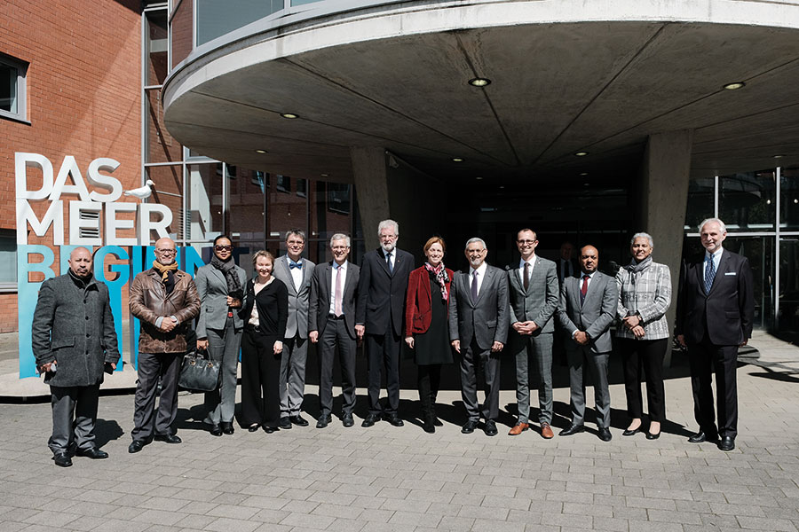 „Wir haben uns außerordentlich gefreut, dass Seine Exzellenz Jorge Carlos de Almeida Fonseca das GEOMAR besucht hat und so die sehr guten und freundschaftlichen Beziehungen, die wir seit vielen Jahren mit den Kapverden unterhalten, unterstreicht“, sagte Prof. Dr. Peter Herzig, Direktor des GEOMAR. „Über die Jahre konnte sowohl auf wissenschaftlicher wie politischer Ebene ein Vertrauensverhältnis aufgebaut werden. Die Kapverden haben sich für uns als ein verlässlicher Partner in der Region erwiesen“, so Herzig weiter. Dies habe letztendlich dazu beigetragen, dass wir gemeinsam das Projekt des Ocean Science Centre Mindelo, einer Forschungs- und Logistikstation, realisieren konnten, in die wir etwa 3 Millionen Euro investiert haben. Seit Ende 2017 dient das OSCM als internationale Basis für viele Expeditionen und Forschungsarbeiten des GEOMAR, aber auch anderer kooperierender Einrichtungen. Neben der Forschung und Ausbildung fungiert das OSCM auch immer wieder als Veranstaltungsort für hochrangige wissenschaftliche und politische Veranstaltungen. „Wir konnten hier unter anderem Fürst Albert II von Monaco oder den EU-Forschungskommissar Carlos Moedas begrüßen und so die internationalen Beziehungen der Republik Cabo Verde unterstützen“, erläutert Prof. Herzig.