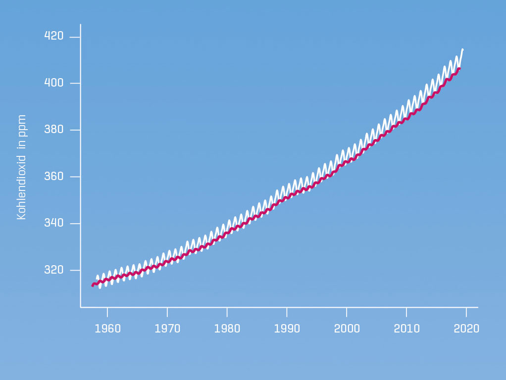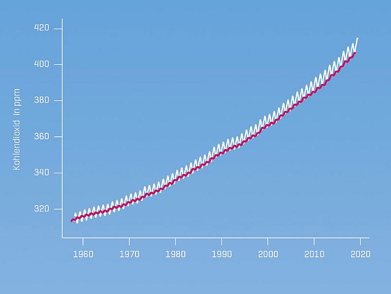 Derzeit steigt die Dosis mit noch nie dagewesener Geschwindigkeit. Die Menschheit hat seit Beginn der Industrialisierung vor etwa 250 Jahren gigantische Mengen an Kohlenstoff in Form von Kohle, Erdöl oder Gas aus dem Erdinneren geholt und verbrannt, um Energie zu gewinnen. Auf diese Weise gelangten mehr als 2.200 Milliarden Tonnen Kohlendioxid (CO2) zusätzlich in die Atmosphäre. Der Anteil des Gases an der Lufthülle unseres Planeten hat sich von 0,028% (oder auch: 280 parts per million, kurz ppm) um das Jahr 1750 auf aktuell 0,0415% (415 ppm) erhöht. „Mehr CO2 in der Atmosphäre bedeutet natürlich auch einen stärkeren Treibhauseffekt. Es ist also unvermeidlich, dass die globalen Temperaturen steigen“, sagt Professor Oschlies.
