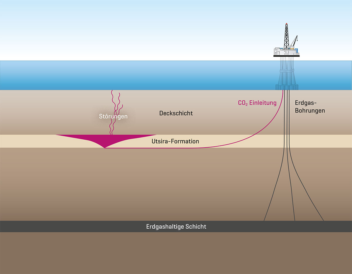 Ein ideales Untersuchungsfeld gab es auch. Denn als das Projekt startete, speicherte der norwegische Staatskonzern Statoil (heute: Equinor) schon seit mehr als 15 Jahren CO2 oberhalb des Sleipner-Gasfelds in der norwegischen Nordsee. Kohlendioxid, welches bei der Erdgasförderung anfällt, wird dort in die sogenannte Utsira-Sandsteinformation gepresst. „Anhand dieses praktischen Beispiels konnten wir sehr gut die Sicherheit von submarinen Speichern überprüfen“, erklärt Wallmann.