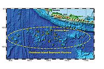 Die Christmas Island Seamount Provinz südwestlich von Java. Während einer Expedition 2008 vermaßen Kieler Meeresforscher das Gebiet und bargen zahlreiche Proben. Grafik: GEOMAR