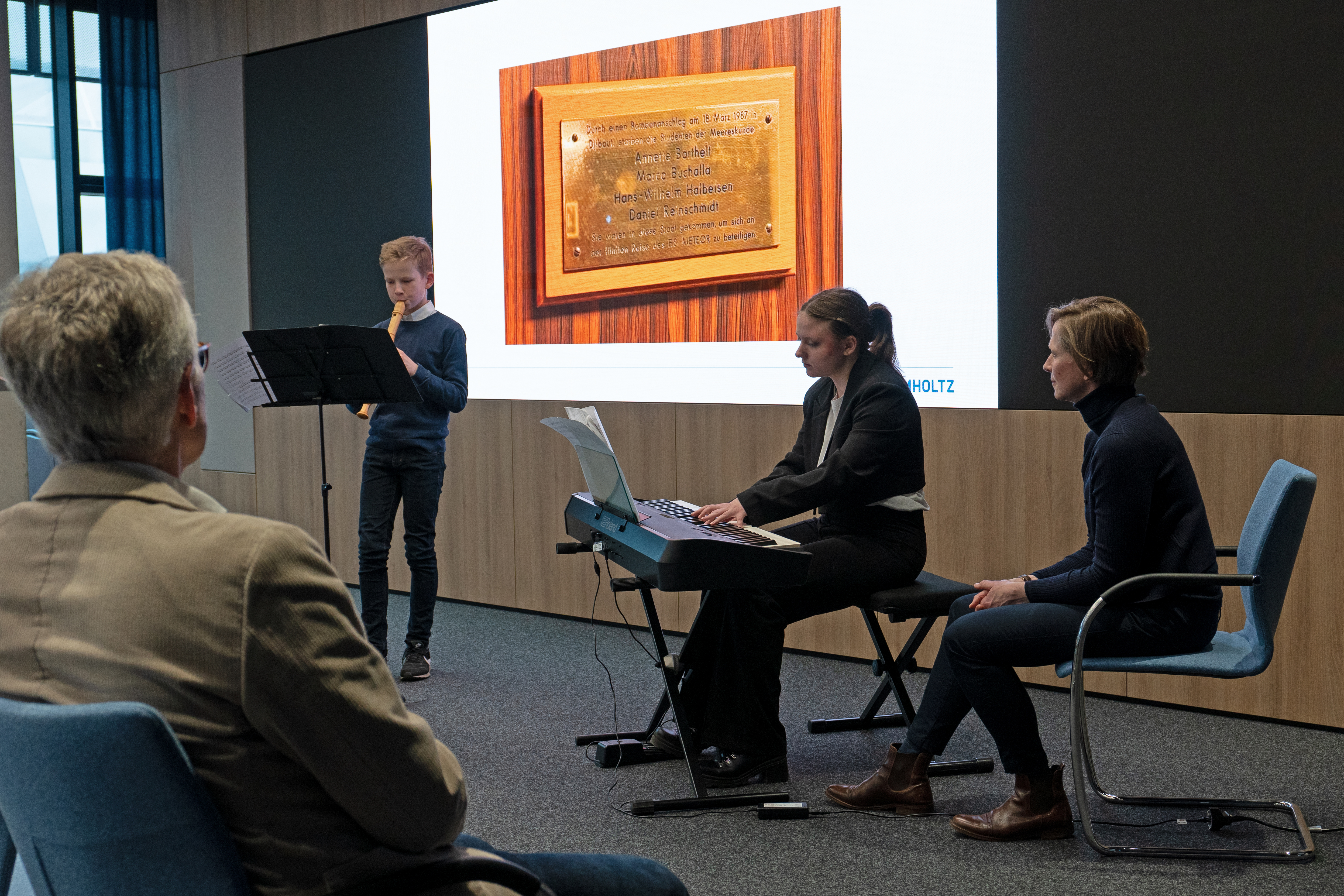 Benjamin Wetzig und Vasylysa Martynova verliehen der Preisverleihung einen musikalischen rahmen. Foto: Maike Nicolai, GEOMAR