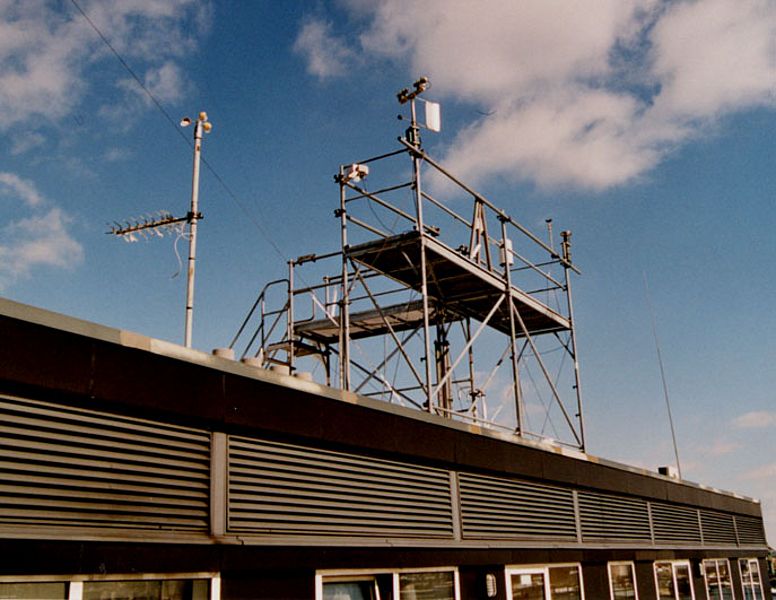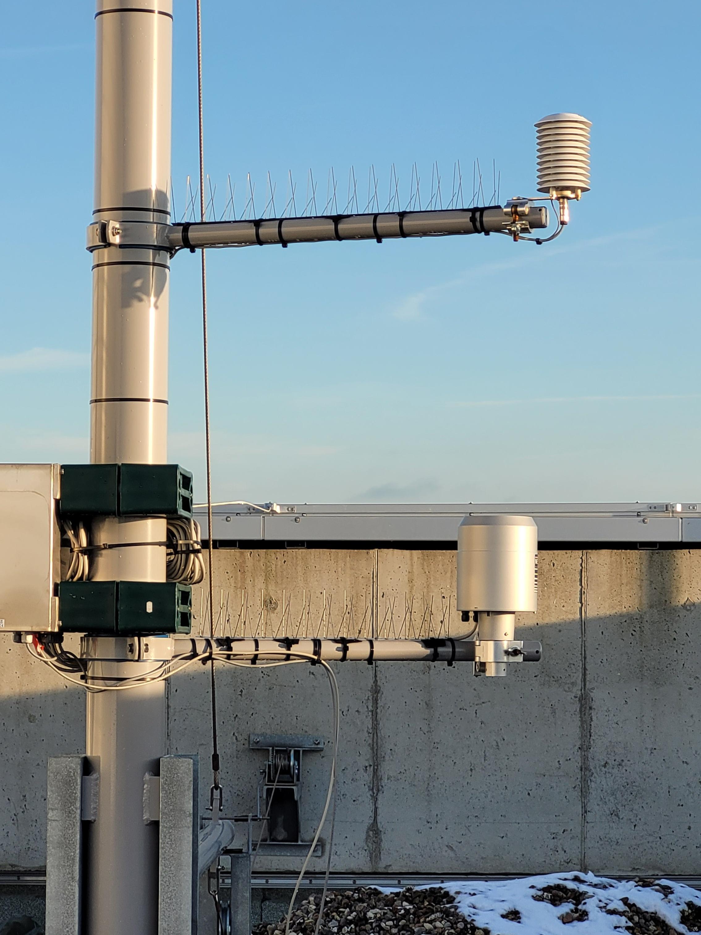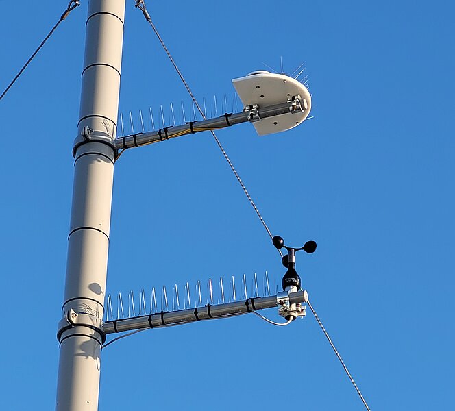 -Messmast steht auf ca. 30m hohem Institutsgebäude-