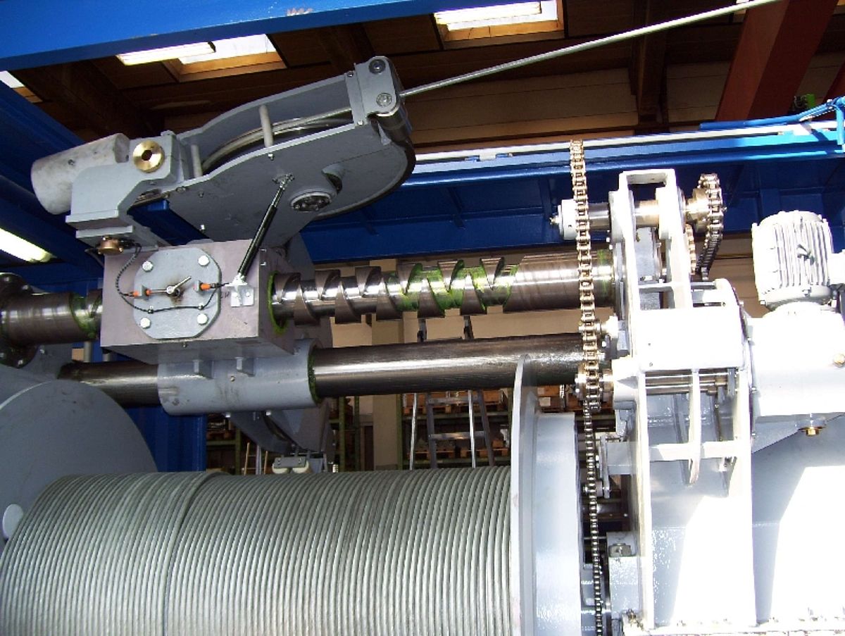 Eine Besonderheit der Winde ist Möglichkeit, das Kabel sowohl quer als auch längs zur Trommelachse aus dem Container herauszuführen.