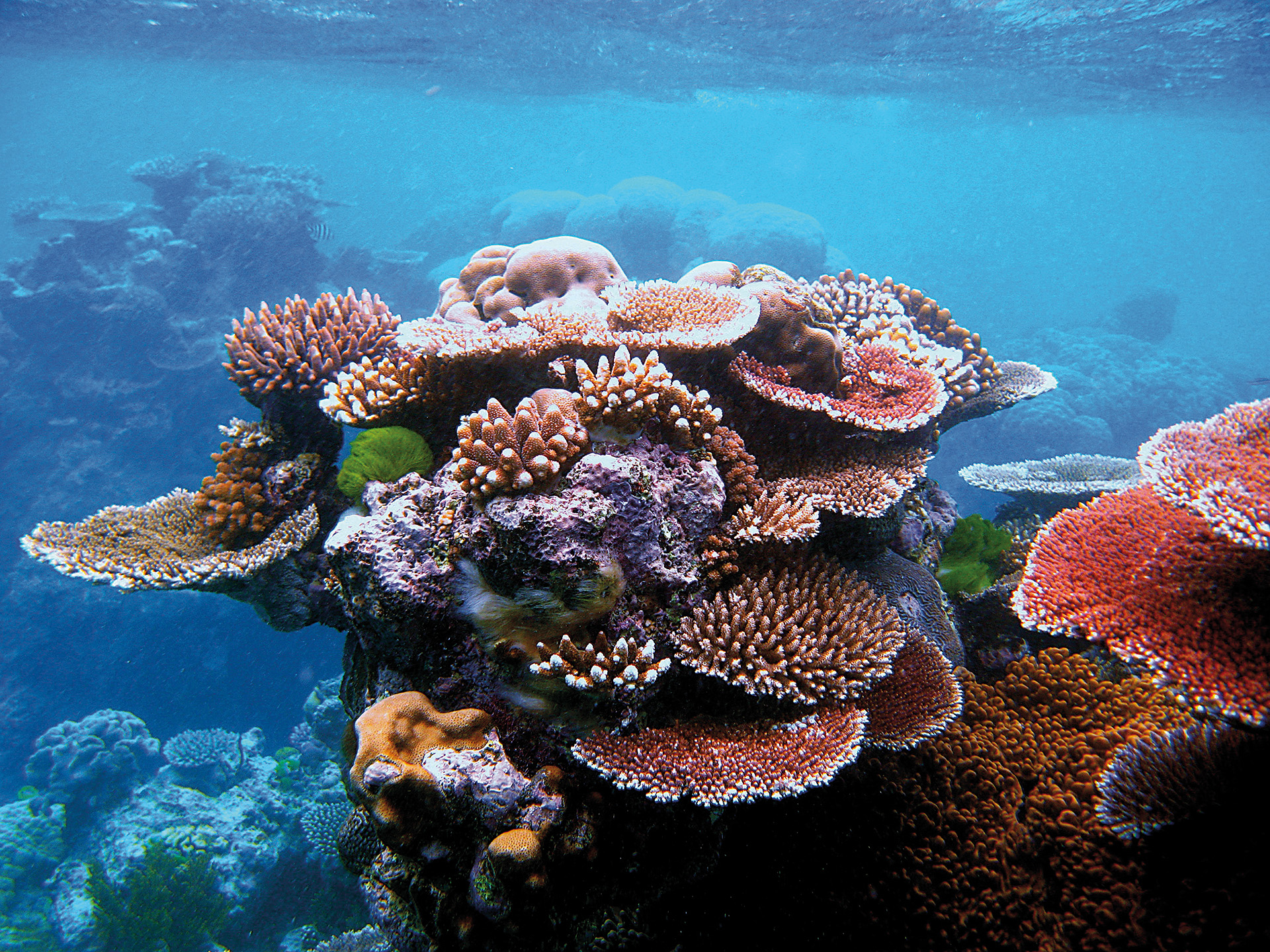 Korallenriffe sind das produktivste und vielfältigste Ökoystem im Ozean überhaupt. Ein Riff, aufgebaut aus lebenden und abgestorbenen Korallen, stellt einen üppigen Lebensraum für zahlreiche Meereslebewesen unterschiedlicher Größe, Zusammensetzung und Farbe dar, welcher so gleichermaßen Touristen und Wissenschaftler anzieht. Die riffbildenden Organismen sind meistens mit Algen in Symbiose lebende Korallen, aber auch Kalkalgen, Foraminiferen und Muscheln, die zusammengenommen für ungefähr 40 Prozent der Menge des im Ozean gebildeten Kalziumkarbonats (Kalk) verantwortlich sind. Dieser chemische Vorgang wird auch als Kalkfällung bezeichnet.