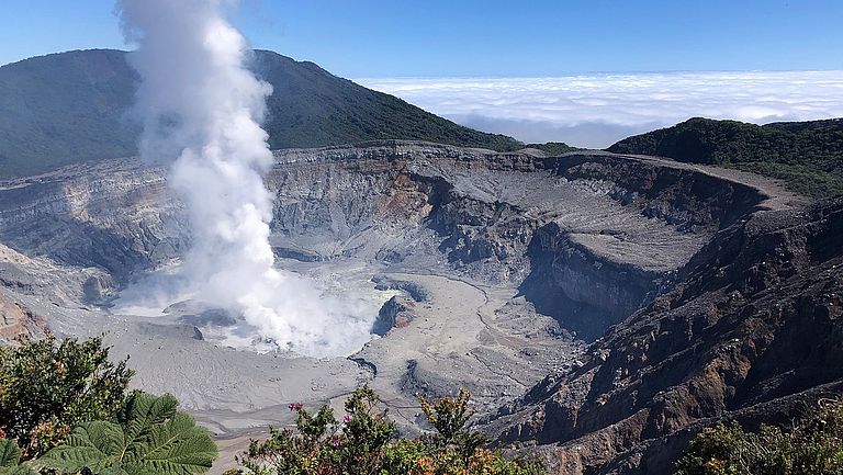 Es mag überraschen, dass sich Dutzende von Vulkanen in einem Zustand erhöhter Aktivität befinden oder gerade jetzt ausbrechen. Die überwiegende Mehrheit dieser Vulkane befindet sich an Subduktionszonen rund um den Pazifischen Feuerring und haben das Potenzial für explosive Ausbrüche. Im Gegensatz dazu gibt es aber auch an Hotspots wie Hawaii oder an Spreizungszonen wie auf Island Vulkane, die in der Regel ihre Lava langsam ausstoßen. Was führt dazu, dass manche Vulkane explosiver sind als andere? Bei explosiven Eruptionen werden große Volumenanteile von Gas freigesetzt, die das geschmolzene Gestein auseinanderschleudern. Bei diesem Gas handelt es sich hauptsächlich um H2O, also Wasser im gasförmigen Zustand.